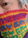 This cowl design was inspired by a poster used for the first New York City Pride March in 1970, then called Christopher Street Liberation Day.