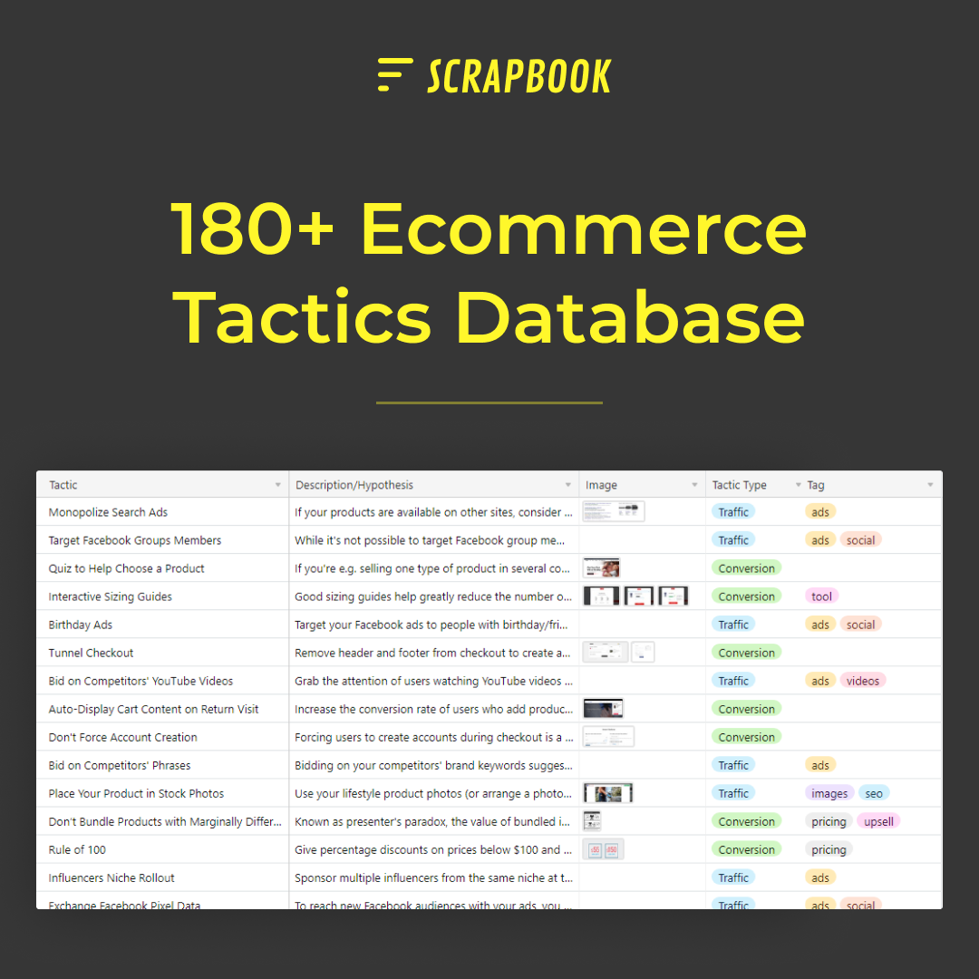 210+ Ecommerce Marketing Tactics Database