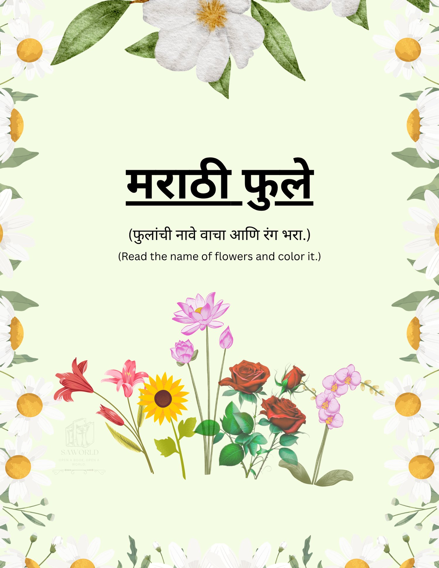 मराठी फुले: फुलांची नावे वाचा आणि रंग भरा. (Read the name of flowers and color it.)