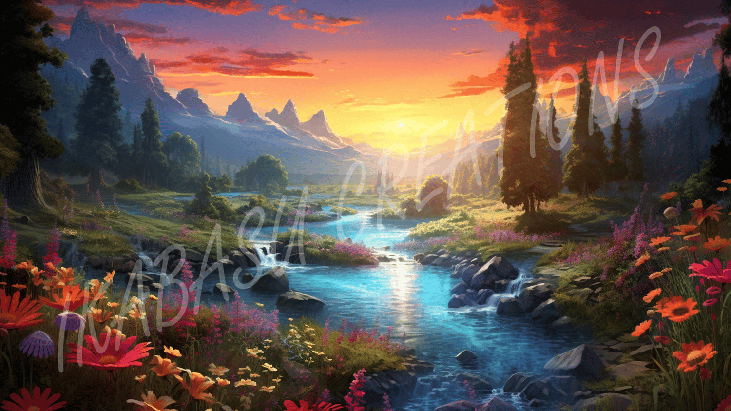 Melted snow from the nearby mountains combined with ground water have created a beautiful flood plane in the area below. Small waterfalls dot the landscape, with wildflowers springing to life around the rivers and ponds. Tall pines line the outer edges of this gorgeous setting.