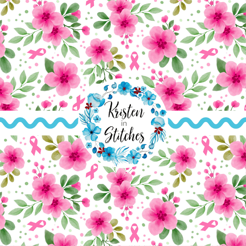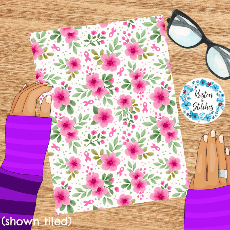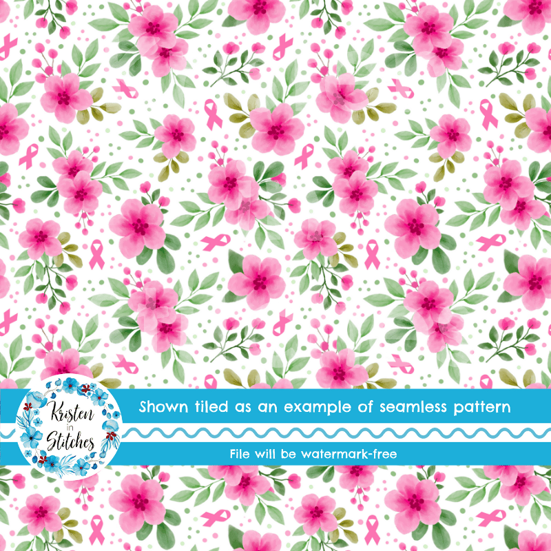 Pink Awareness Ribbon Watercolor Floral Seamless Pattern