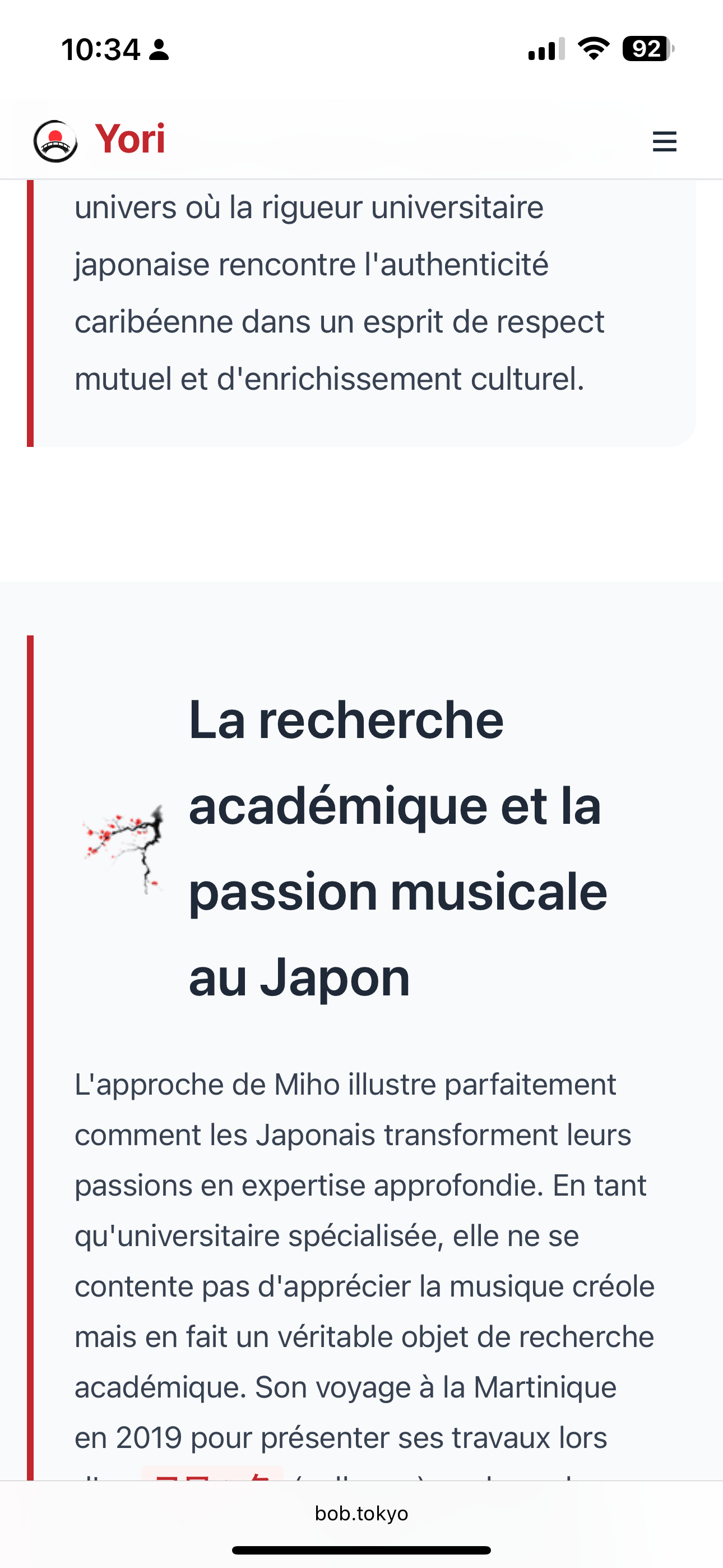 Continuez votre exploration avec Miho, professeure assistante et directrice du groupe TiPunch. Découvrez comment sa recherche universitaire sur la musique créole martiniquaise l'a menée à créer son propre ensemble musical au Japon.