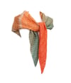 This asymmetrical triangular shawl is worked back and forth from one tip to the opposite side. It combines cables with small interludes of mosaic knitting. Increases along the top edge and decreases along the bottom create its biased shape.