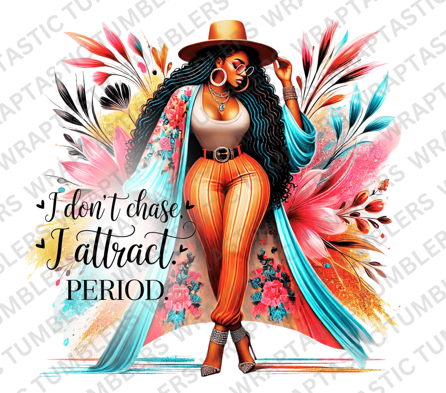 This “I Don’t Chase, I Attract. PERIOD.” affirmation PNG is perfect for sublimation projects. Great for tumblers, shirts, mugs, journals, and wall art. A bold, motivational digital design that empowers confidence and self-worth, ideal for crafters and entrepreneurs.