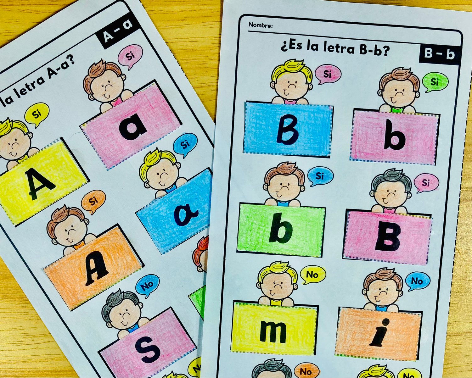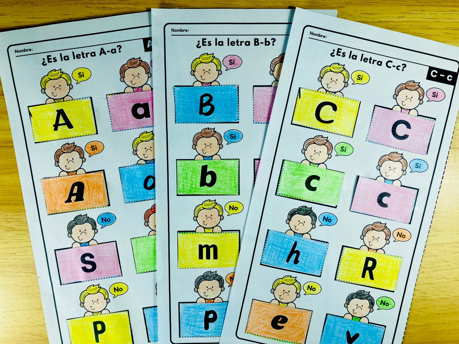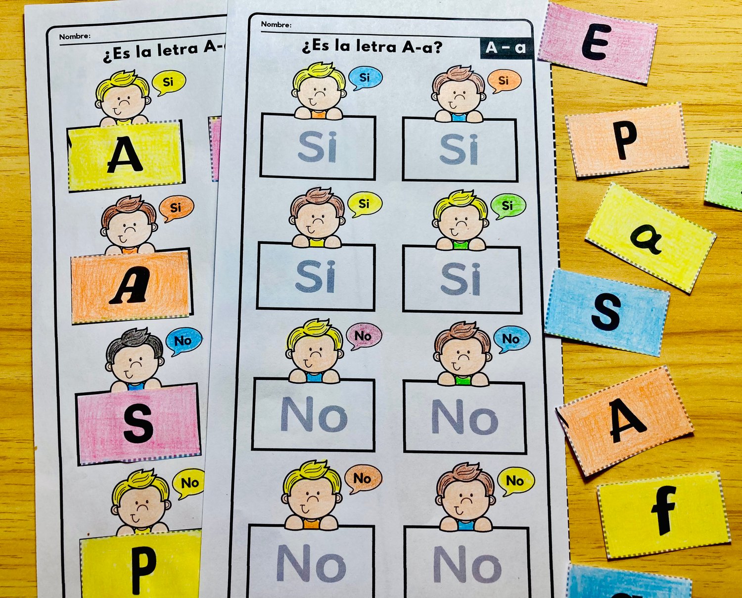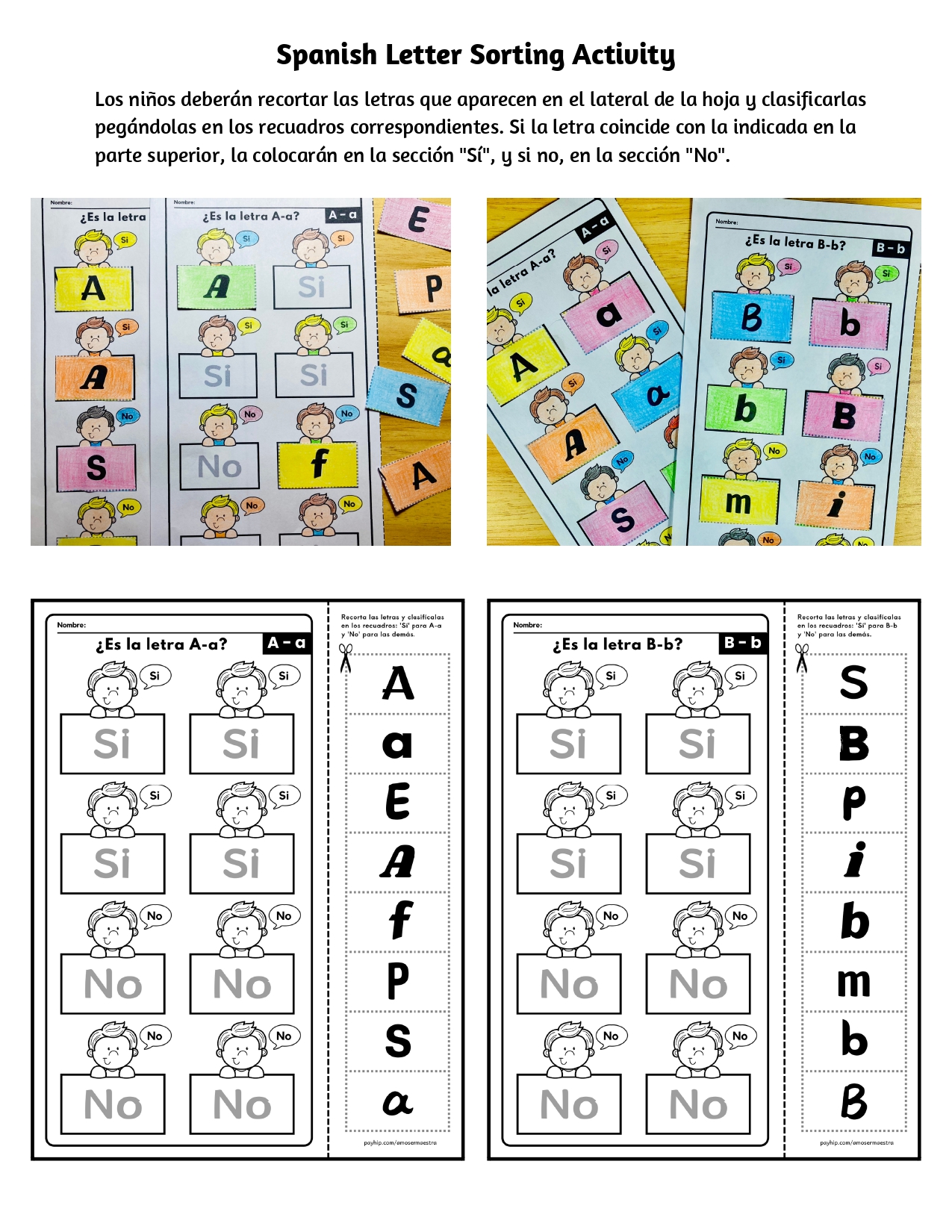 A través de esta actividad de clasificación, los niños podrán identificar cada letra en sus diferentes formas, desarrollar habilidades de discriminación visual y fortalecer la motricidad fina al recortar y pegar.