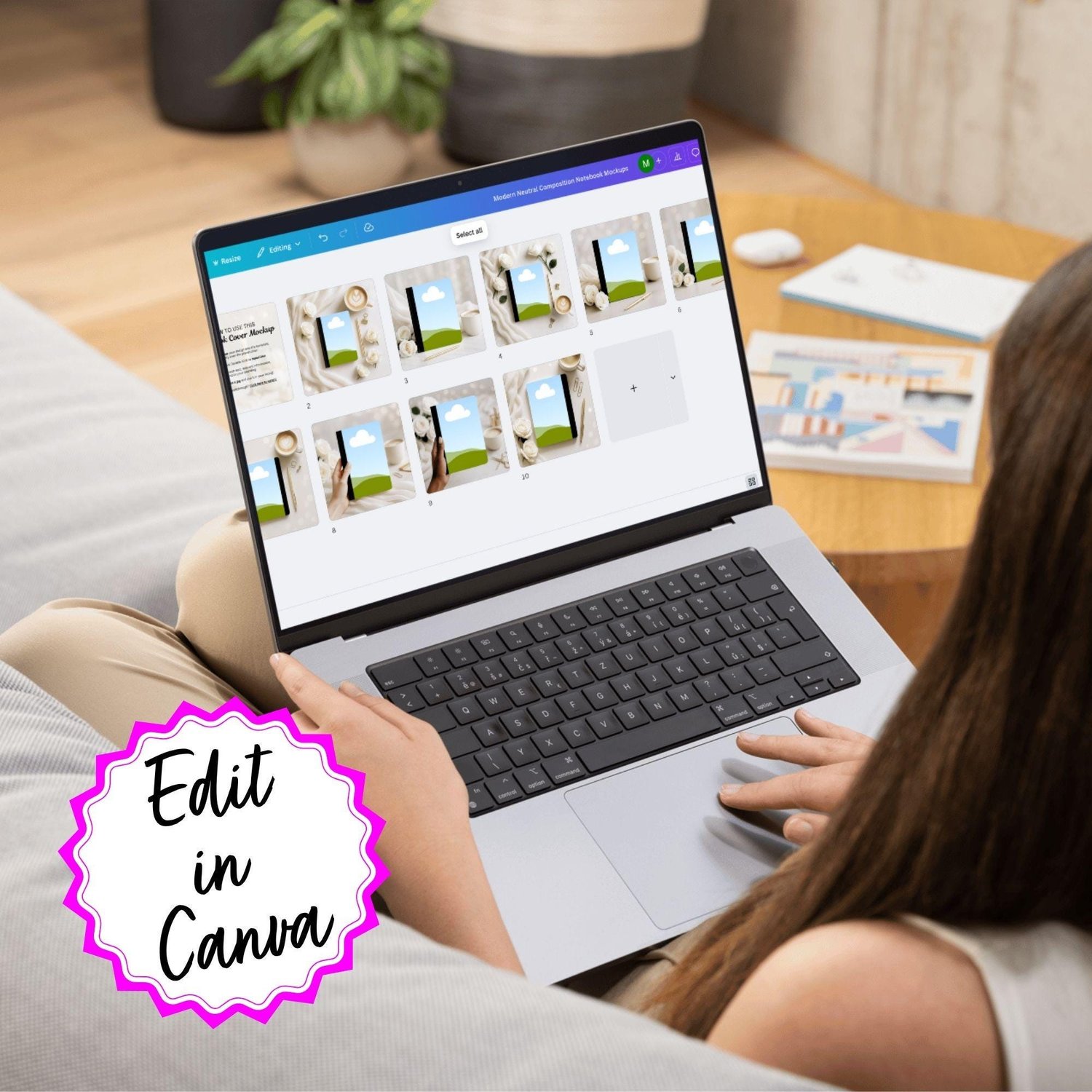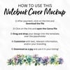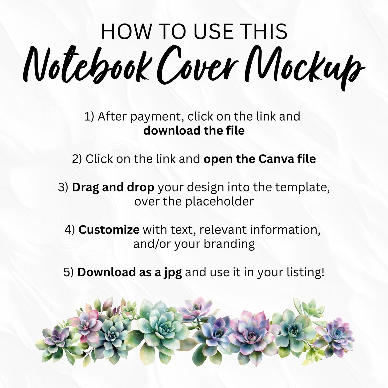 Designed for Canva, this template makes it easy to insert your design—just drag and drop into the frame, adjust as needed, and download your finished image. Ideal for Etsy, Shopify, and website listings, it works beautifully for minimal, modern, or nature-inspired notebook cover designs.