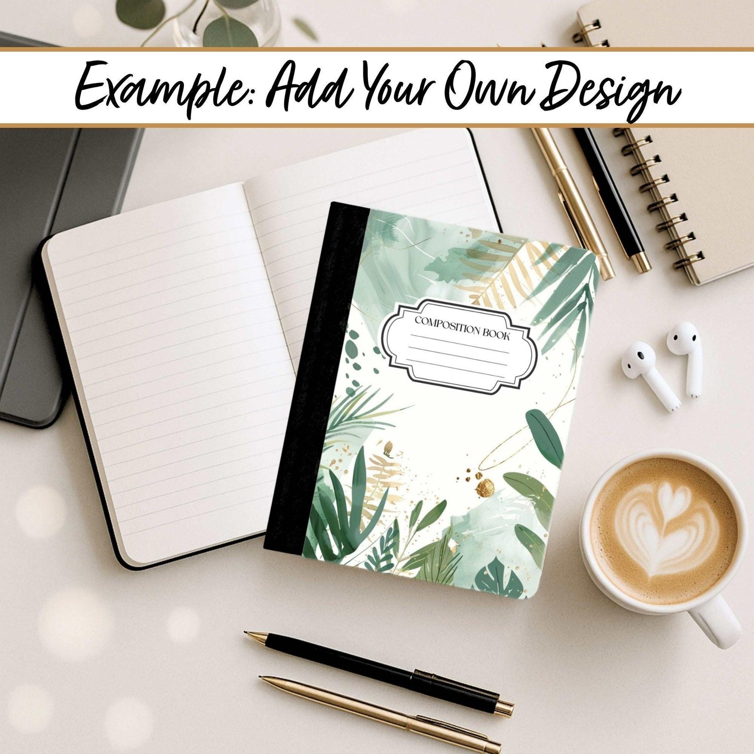 Showcase your composition notebook covers in style with this minimal modern composition notebook Canva mockup.