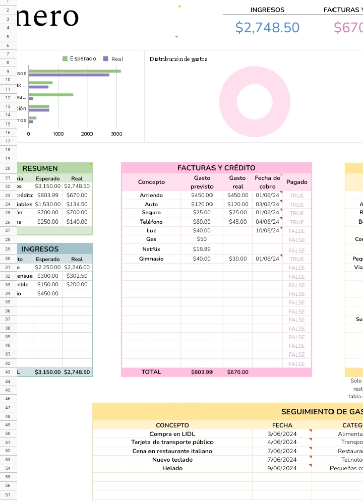 • Control total de ingresos, gastos fijos, variables, ahorros e inversiones.