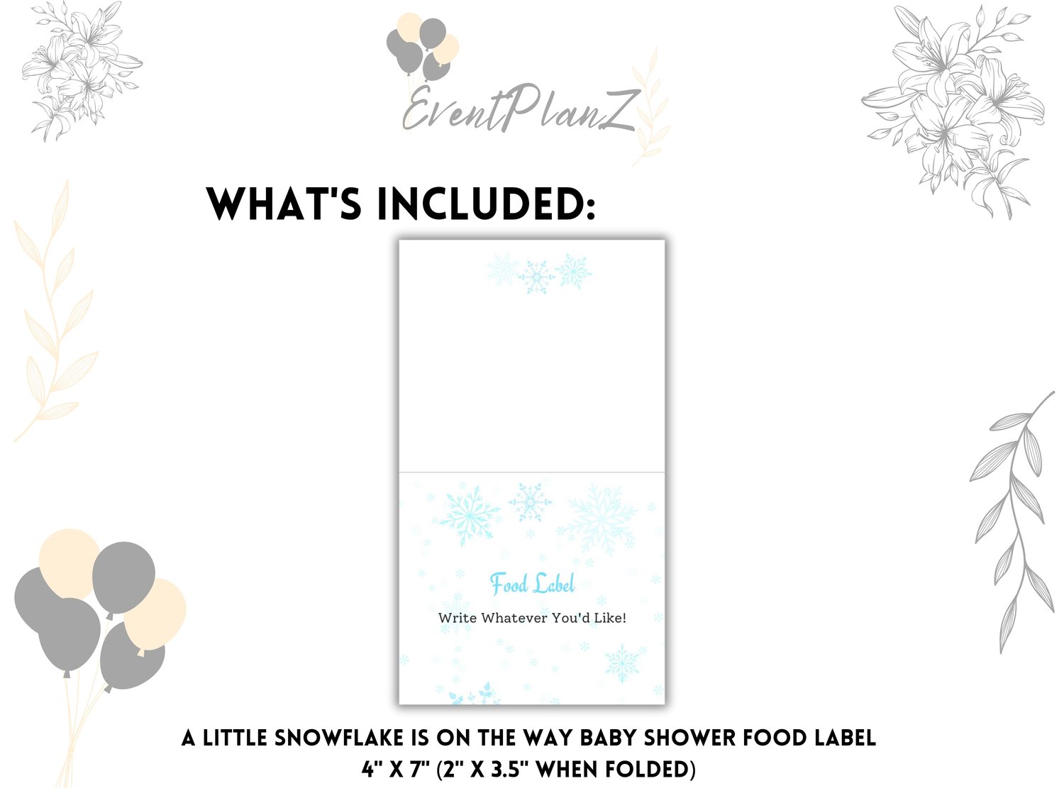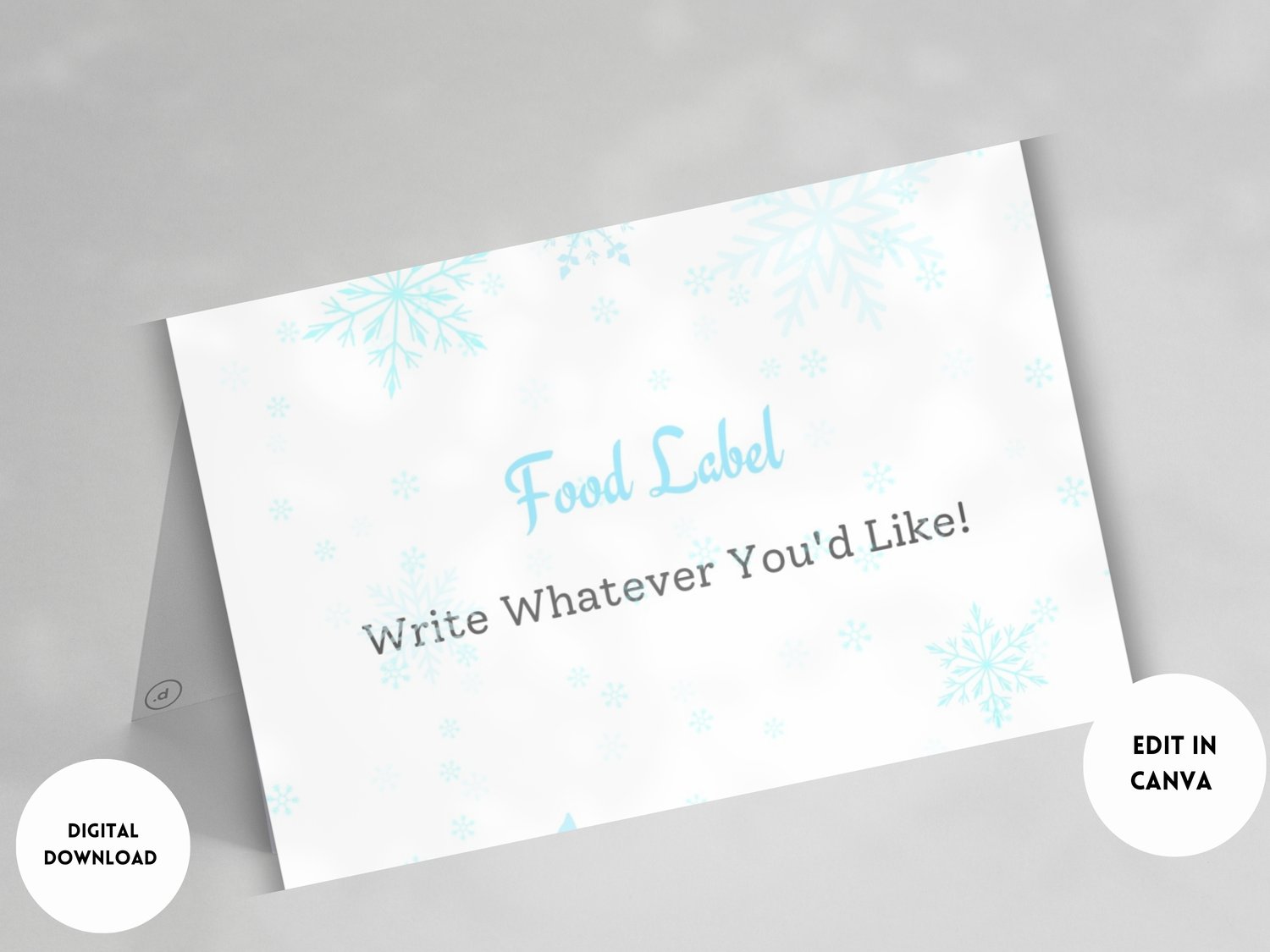 A Little Snowflake Is On The Way Baby Shower Food Label | Printable Winter Gender Reveal Place Cards | Canva Template | Christmas Tent fold