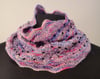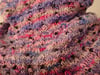 This soft cowl was knit from a lightweight wool blend, and should be handwashed and laid flat to dry. It is lightweight, and is next-to-skin soft.