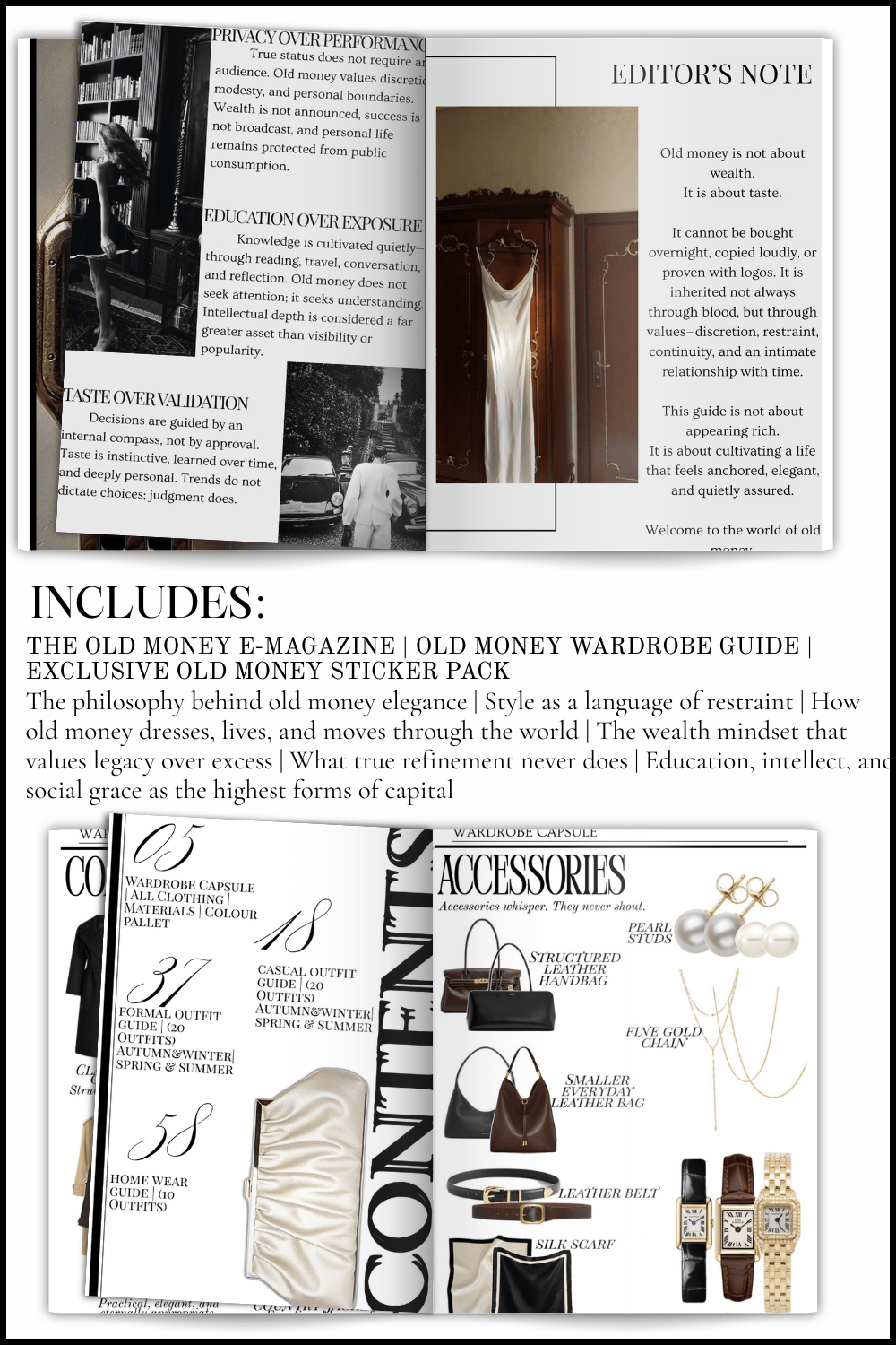 Inside, you’ll discover the unspoken codes of old money living—how style, intellect, etiquette, and mindset come together to form a life of quiet luxury.