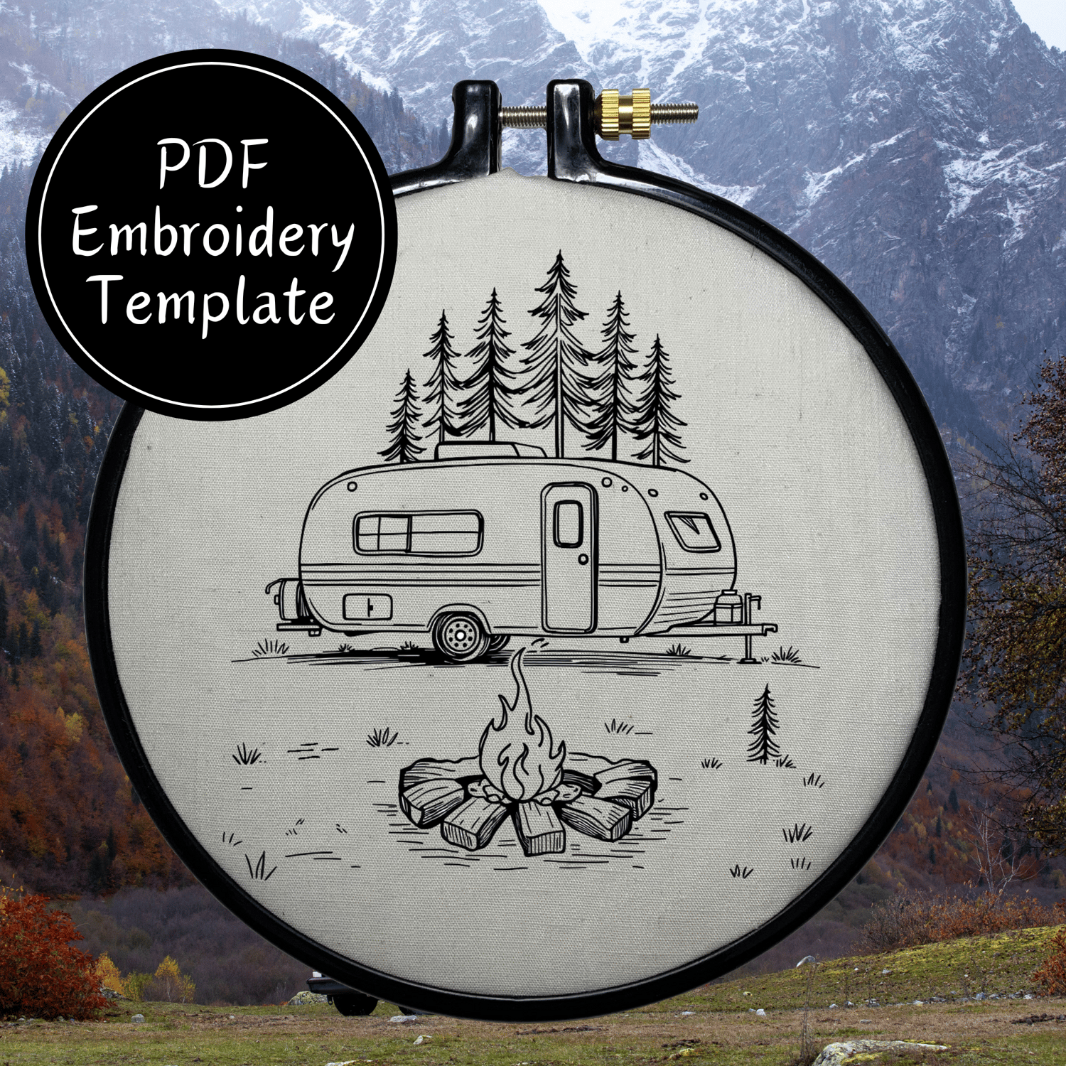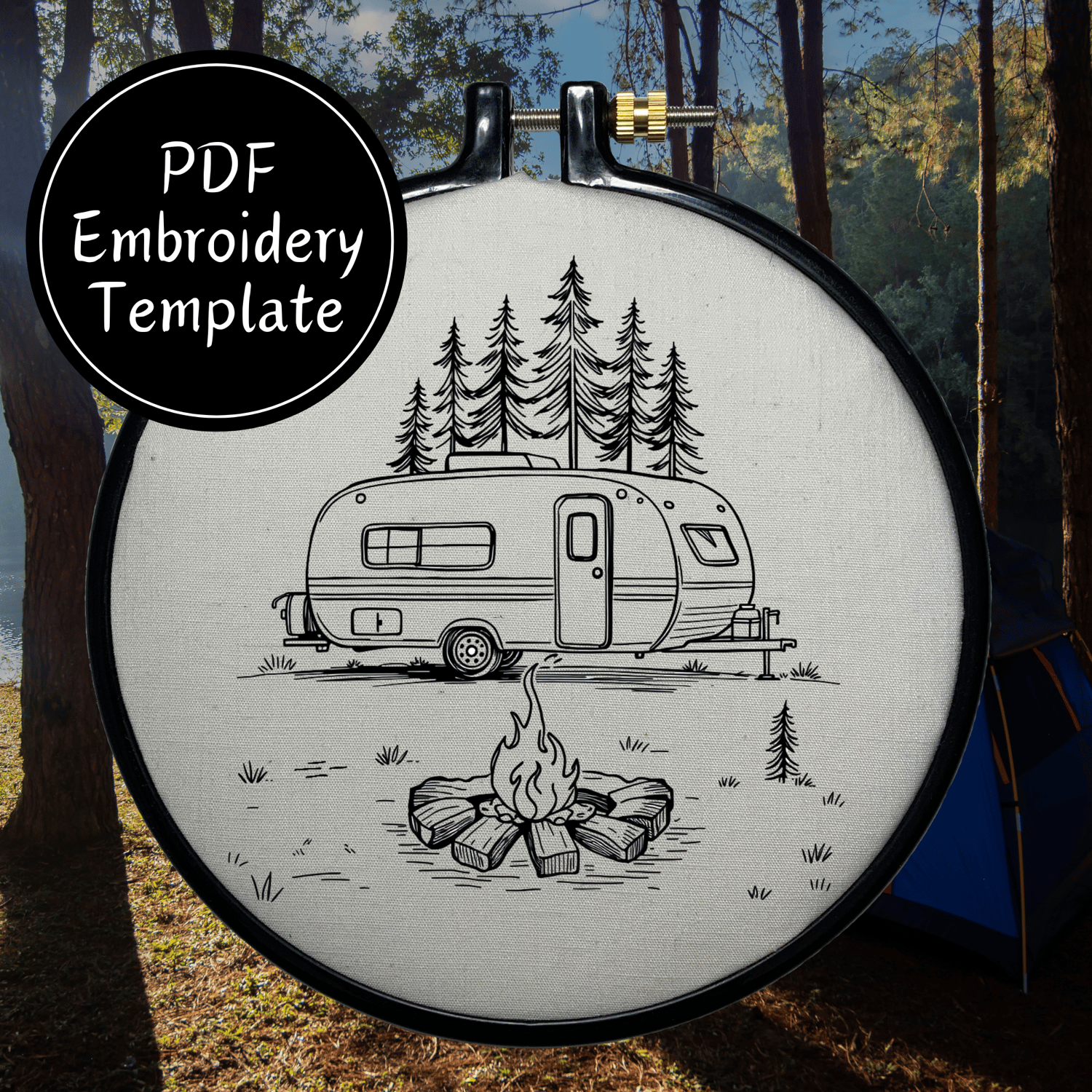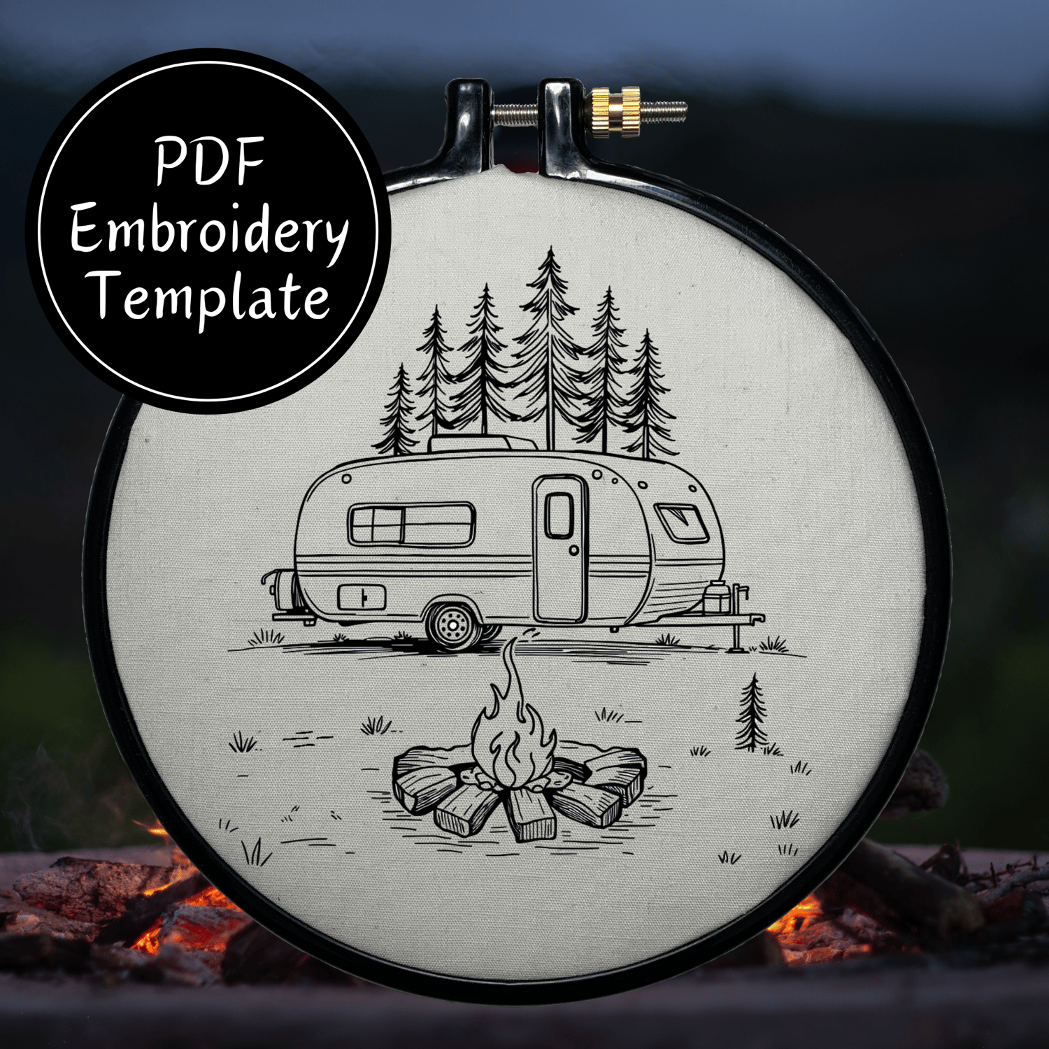 Make this Camping Life pattern come alive with your choice of colors and stitches to create this simple embroidery pattern.
