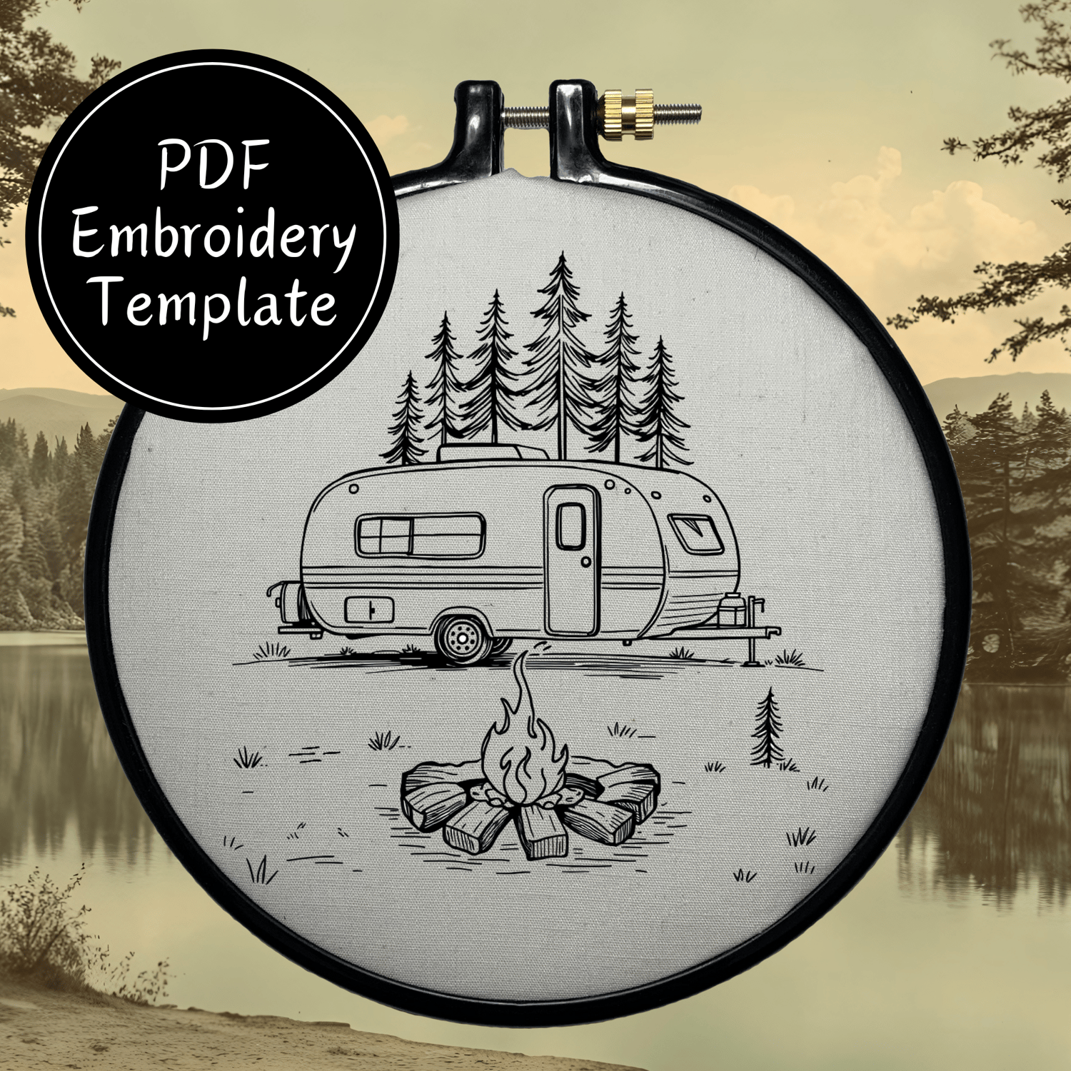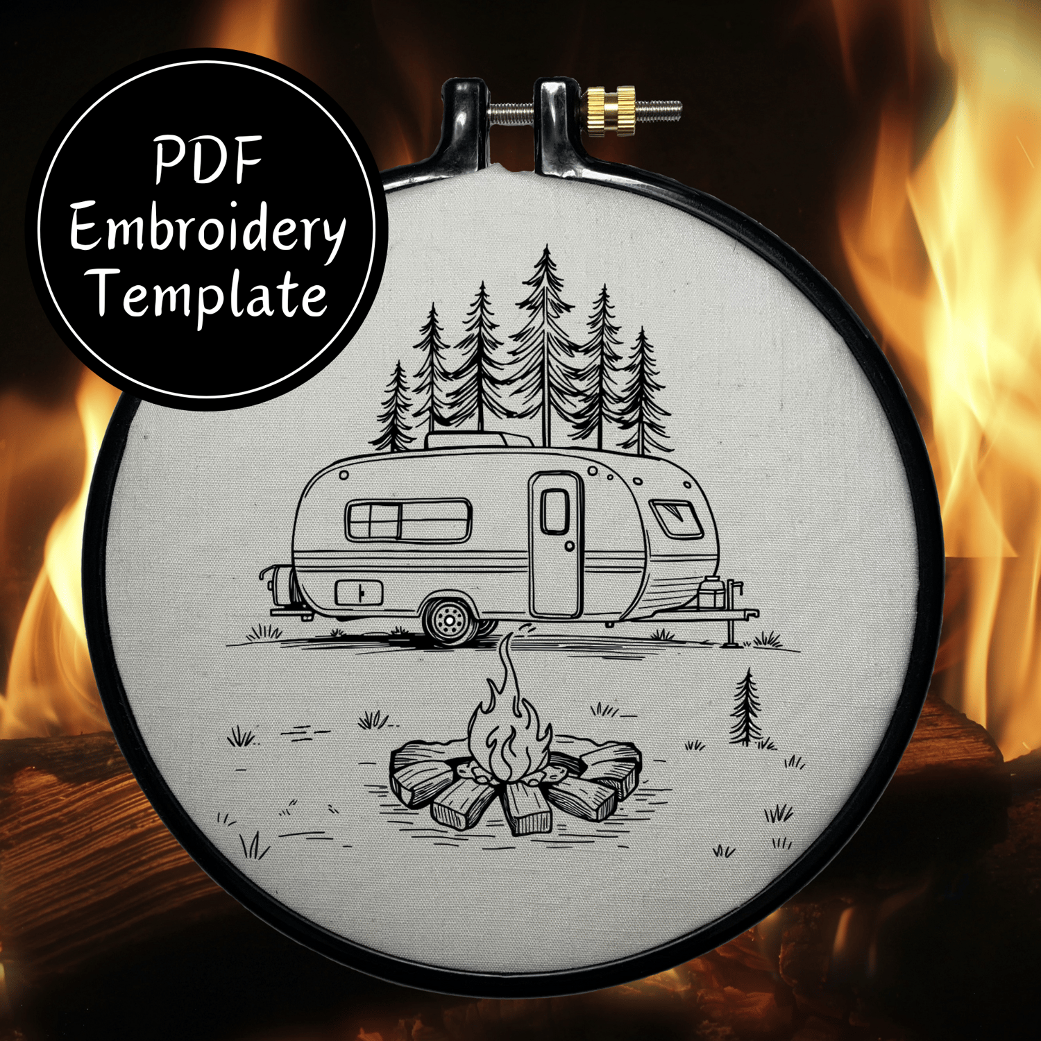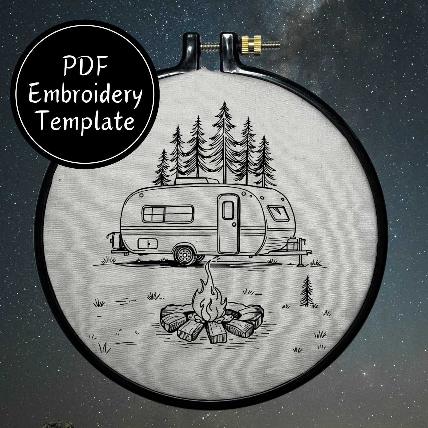 Make this Camping Life pattern come alive with your choice of colors and stitches to create this simple embroidery pattern.