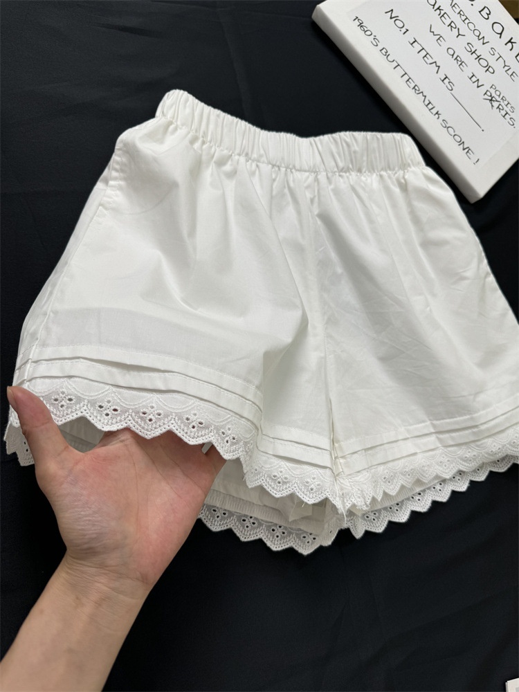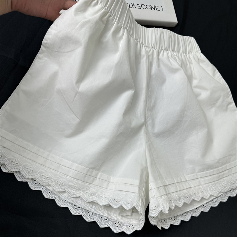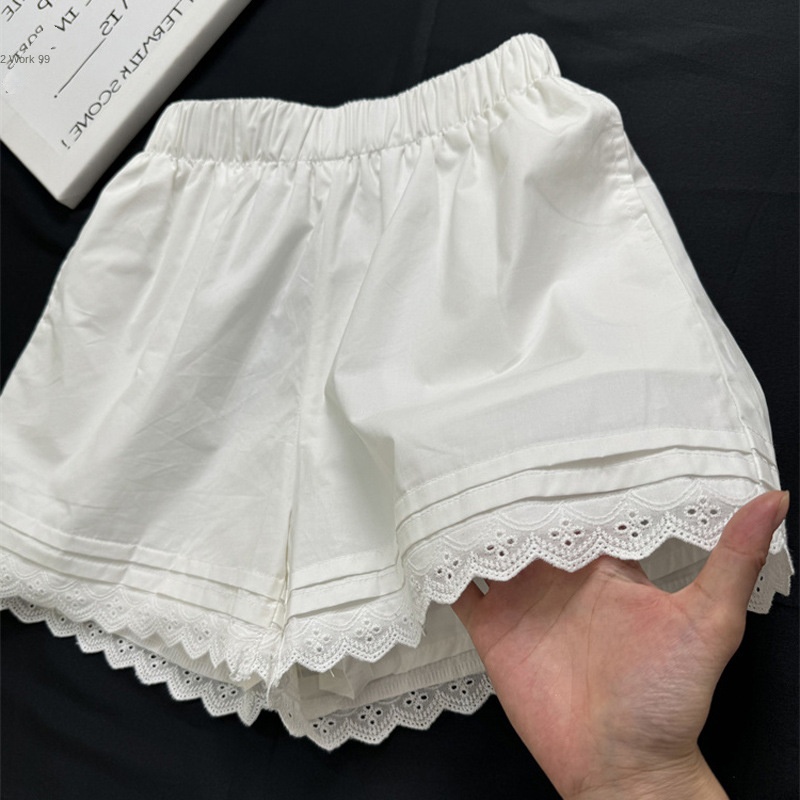 White Lined Shorts for Women Summer Wear Loose High Waist Lace Trim Athletic Beach Hot Pants
