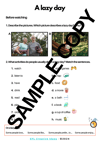 In this lesson, students will talk about free time activities and hobbies people do on a lazy day. They will read an authentic blog post and watch some people speaking about their favorite activities on a lazy day. By the end of the lesson, students will write about their likes and dislikes on a lazy day- You will get the Student's worksheet and detailed Teacher's notes with answer key.