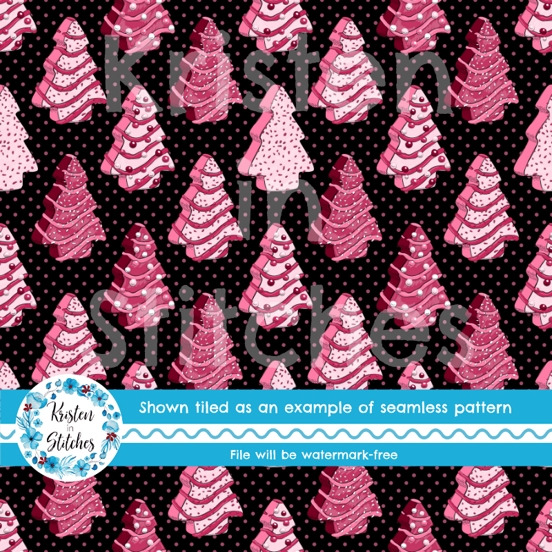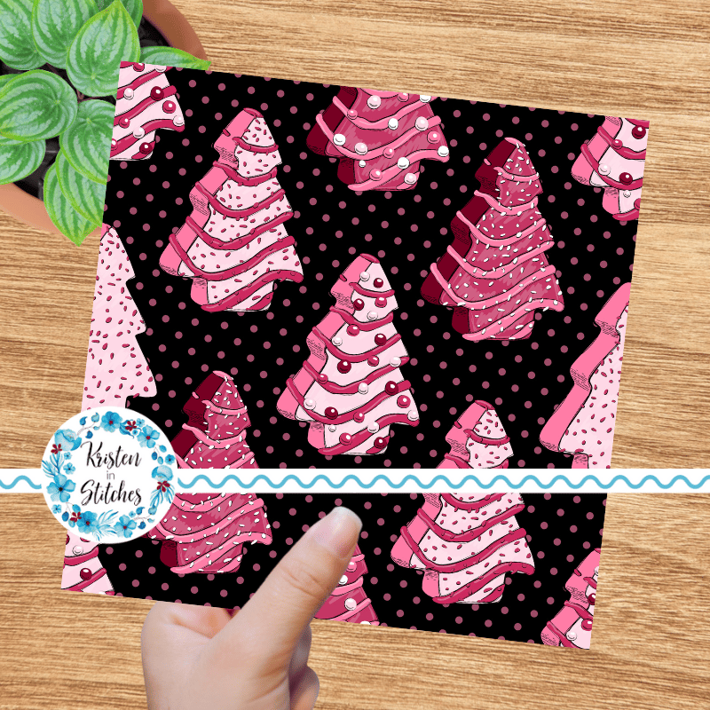 Pink Christmas Tree Snack Cakes Seamless Pattern