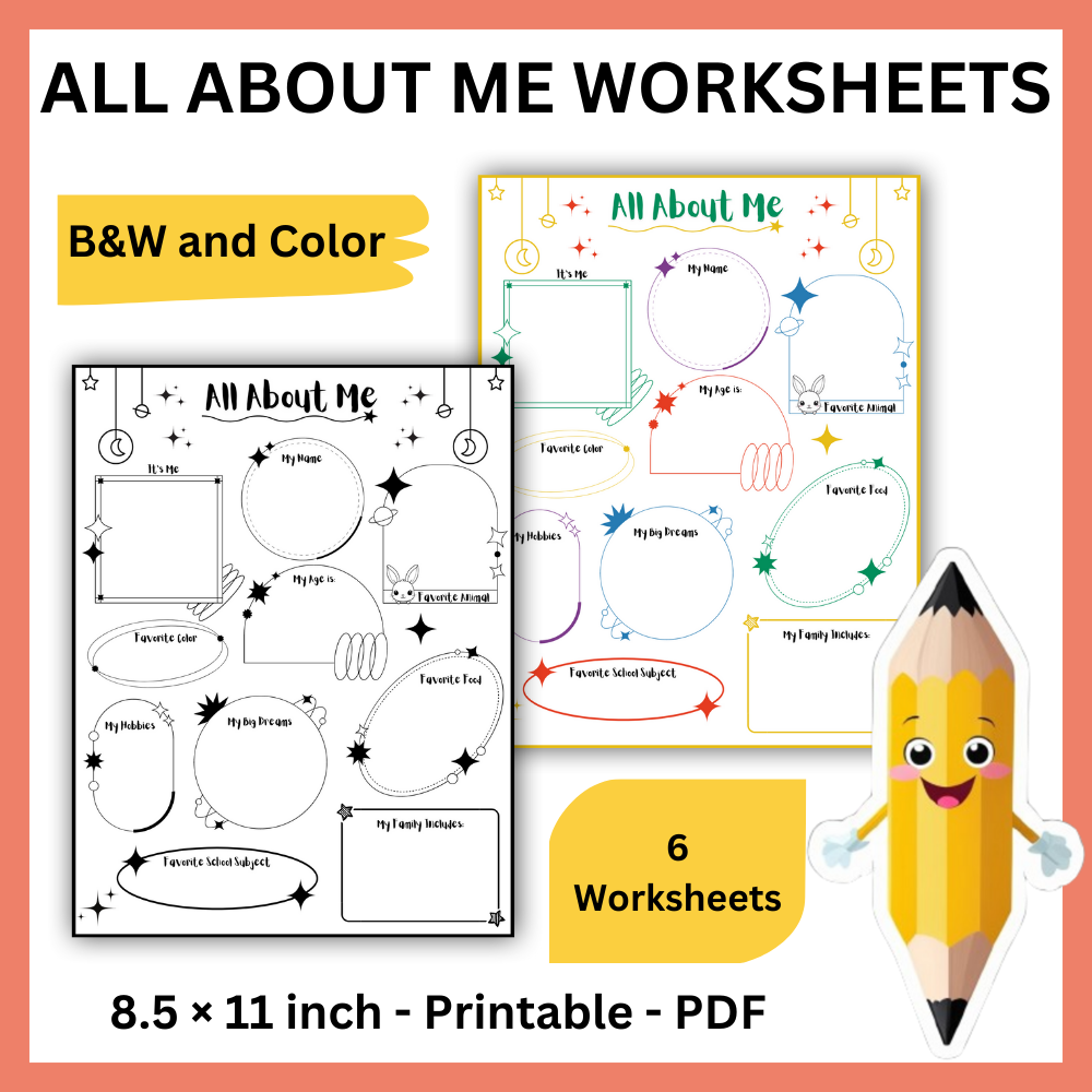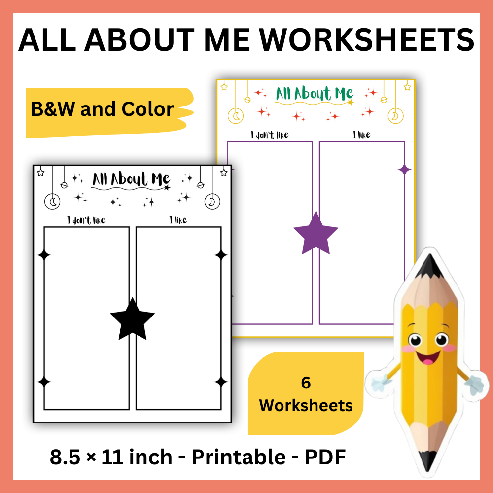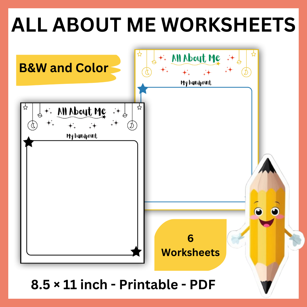 All About Me Worksheet for Preschool and Kindergarten, Printable, Back to School