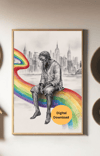 In tattered clothes, he sits so high, On a rainbow, near the sky. New York's skyline far below, A city's rush, but hearts of woe. Amid the wealth, his soul feels free, On colors bright, his dreams can be.