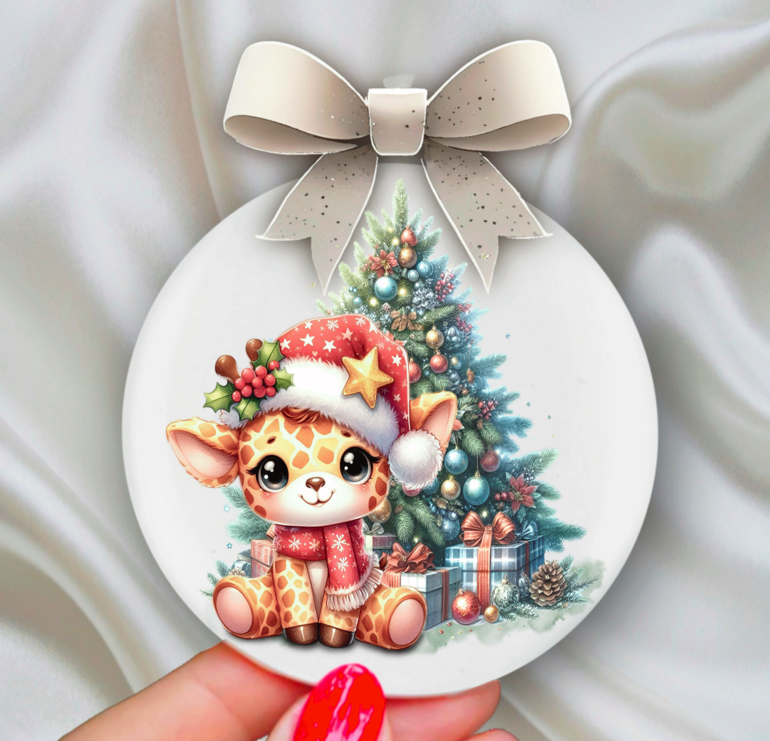 Beautiful Christmas giraffe, watercolour with Christmas tree. For sublimation or print. PNG with transparent background