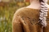 The sweater has a round yoke with a delicate lace pattern and long sleeves with the lace repeated on one cuff. The sweater has plenty of positive ease and an A-line shape increasing towards cropped hem. The neck is shaped higher and the back hem longer using short row technique. Alho gets its beautiful texture from the combination of cashmere and mohair/silk strands held together, while the lace is worked with only mohair/silk.