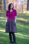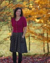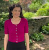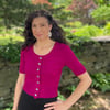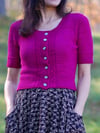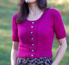 Bernadette cardis were always cropped with a gorgeous scoop neck that flatters both the buxom (like Bernie) and the less-buxom (cough like me!). I’ve added delicate cables along the side of the buttonbands and kept the cables in pattern through the deep ribbing at the hem. The back is all stockinette.