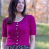 The cardi is worked from the shoulders down with set-in sleeves that are worked simultaneously with the upper bodice--you get a perfect set-in sleeve with no seaming, and you only have to pick up a handful of stitches at the top of the sleeve cap.
