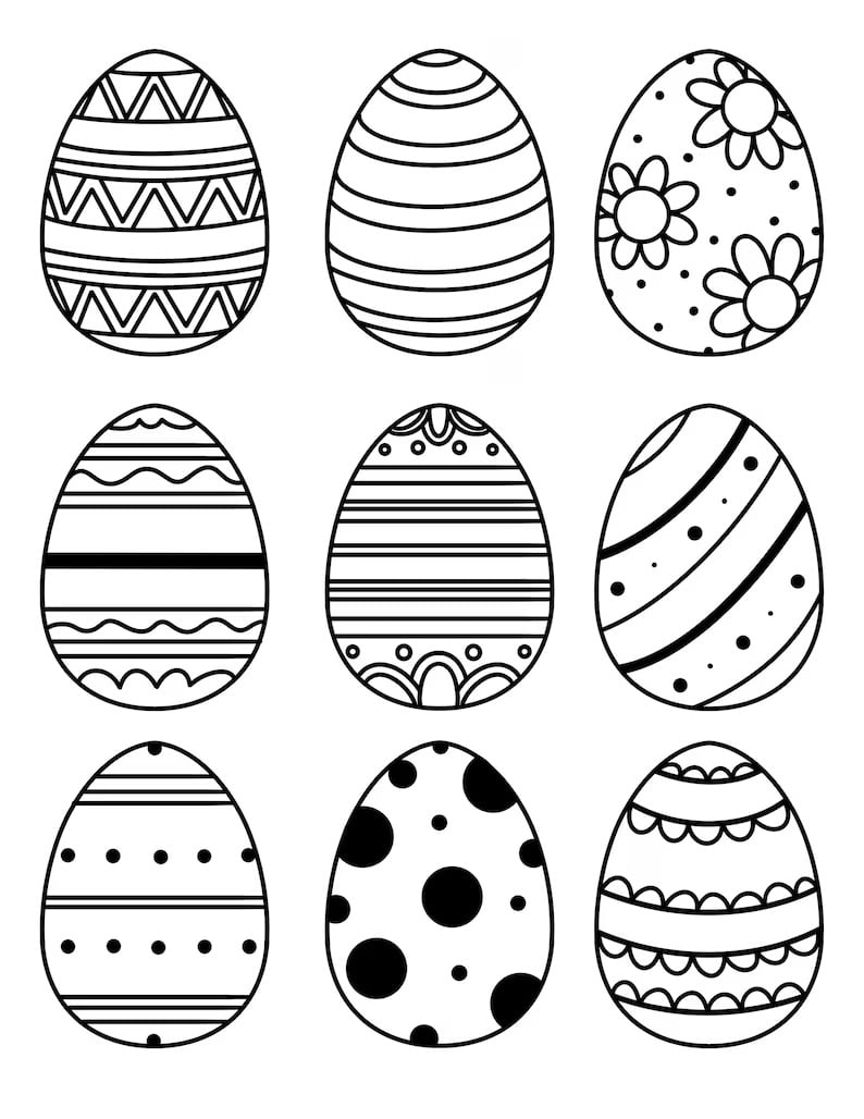 9 Easter eggs to color for a great egg hunt, and create and learn together.