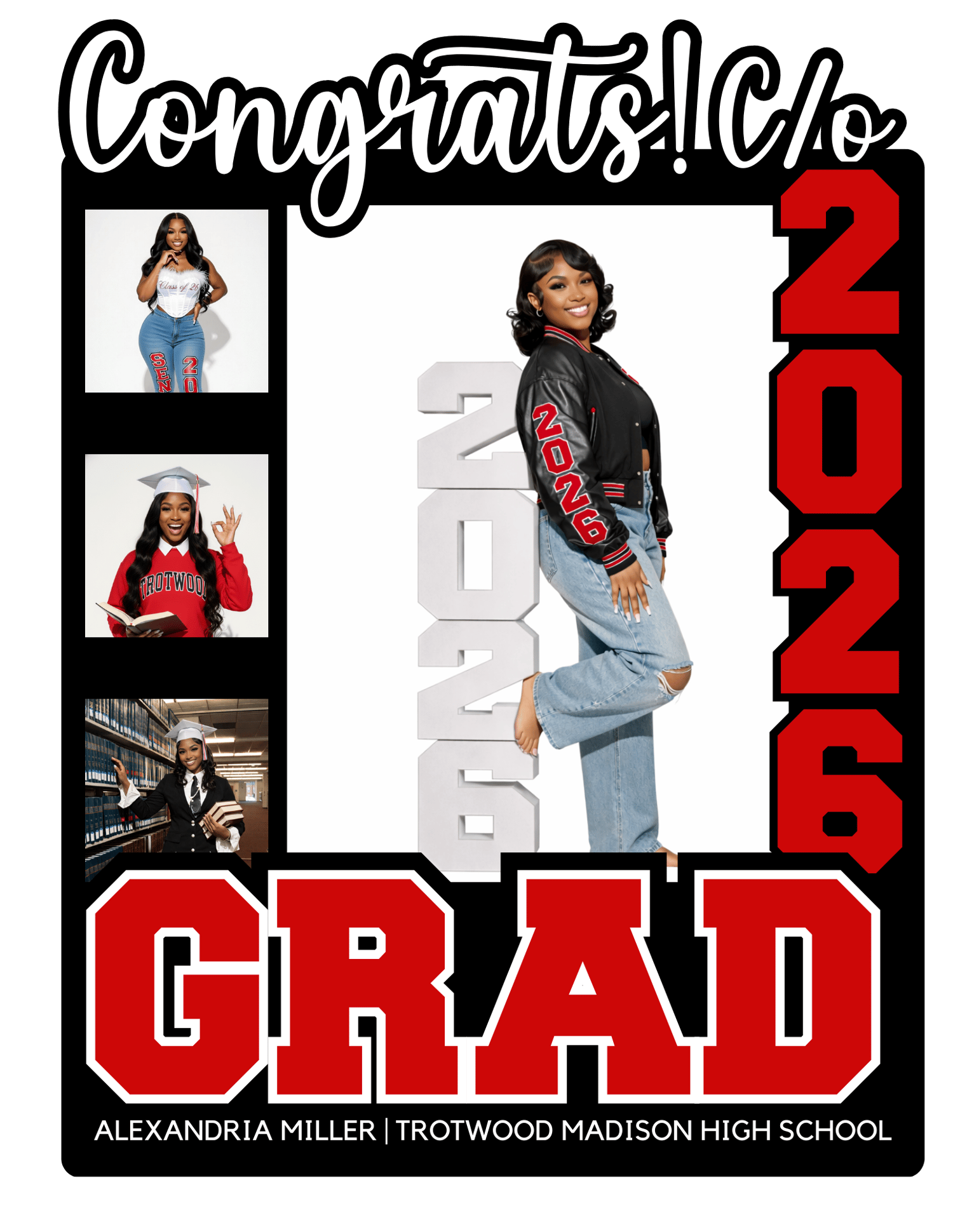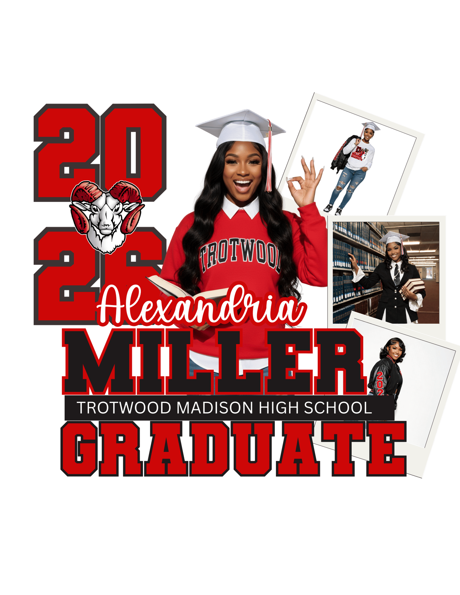 - Bold “Class of 2026” designs