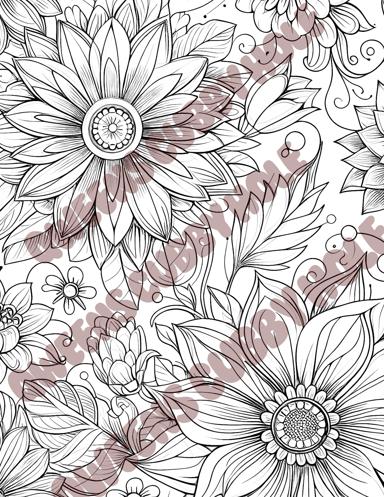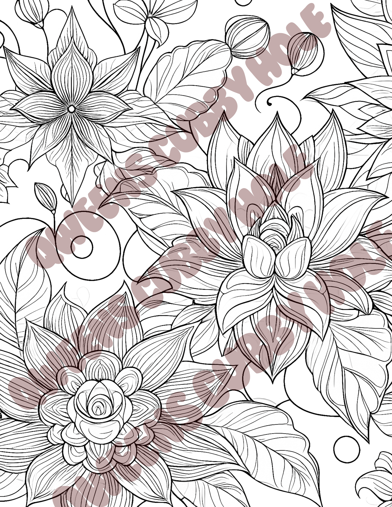 4pc FULL PAGE FLORAL COLORING PAGE BUNDLE