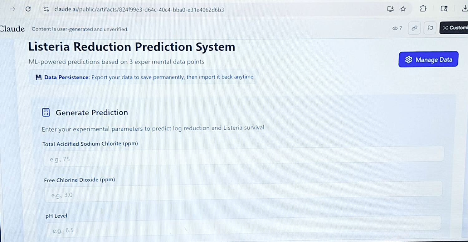 H. Prediction Results will populate, and you will see microbial reduction in cfug anticipated at various days of shelf-life.
