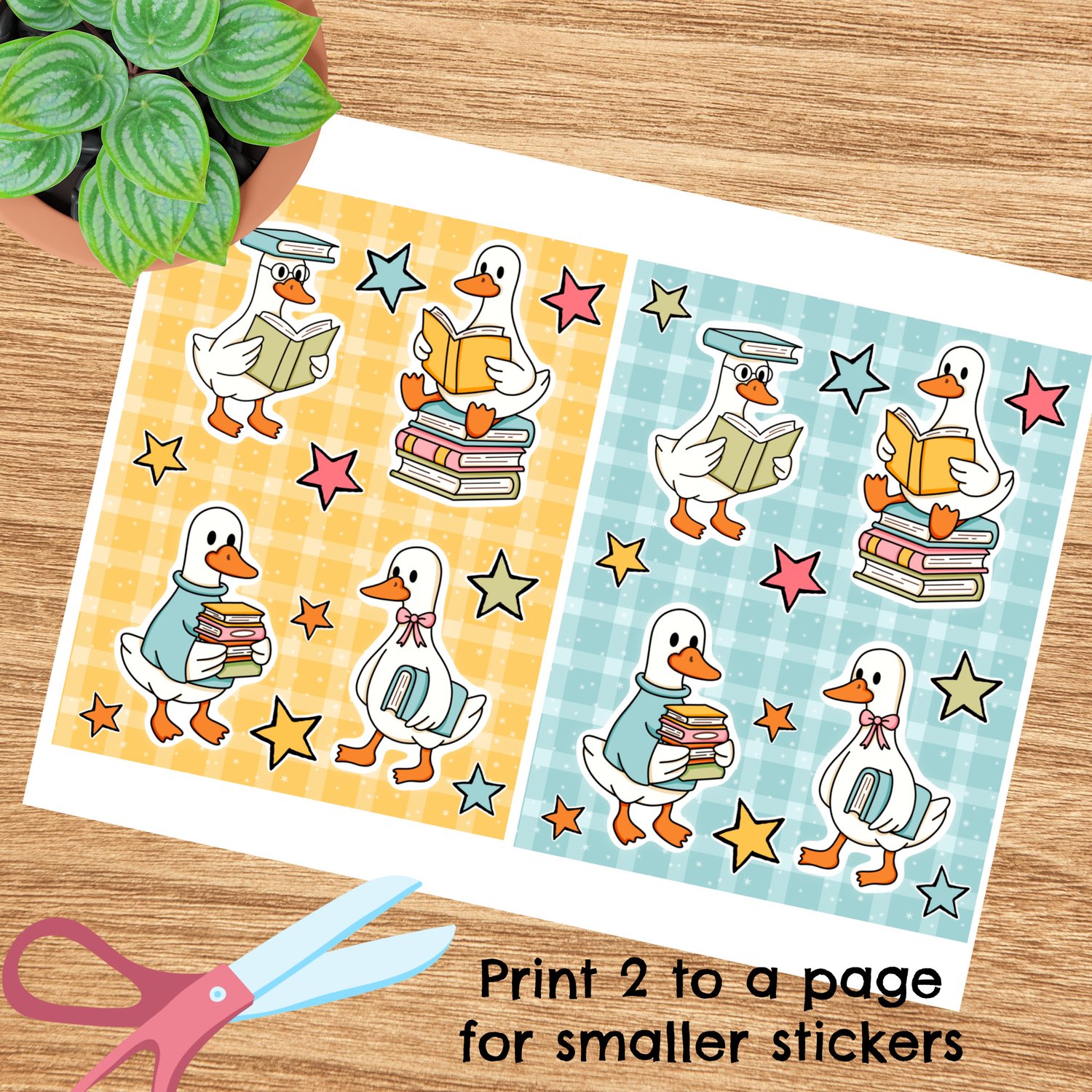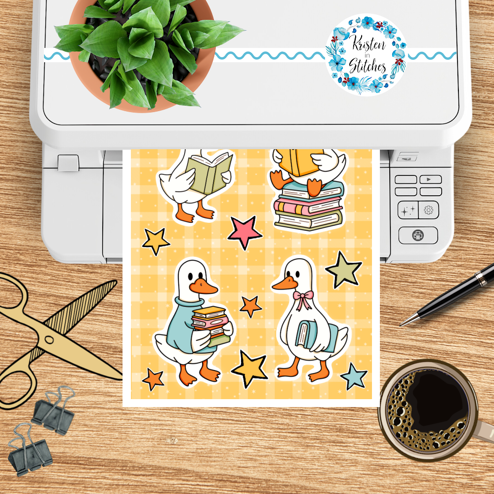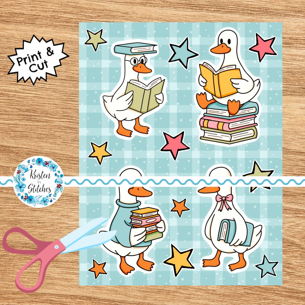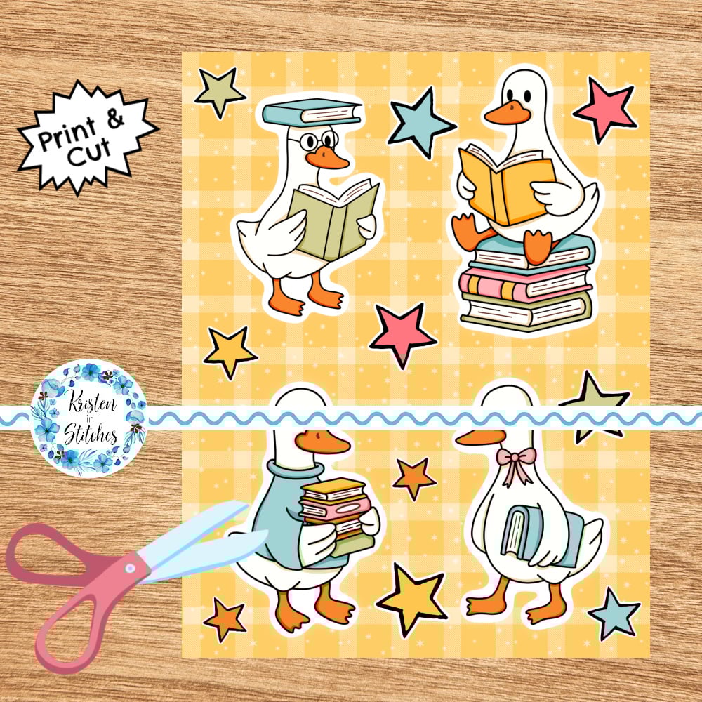 Bookish School Goose Printable Sticker Sheets, PDF PNG, DIY Print & Cut Paper Crafts