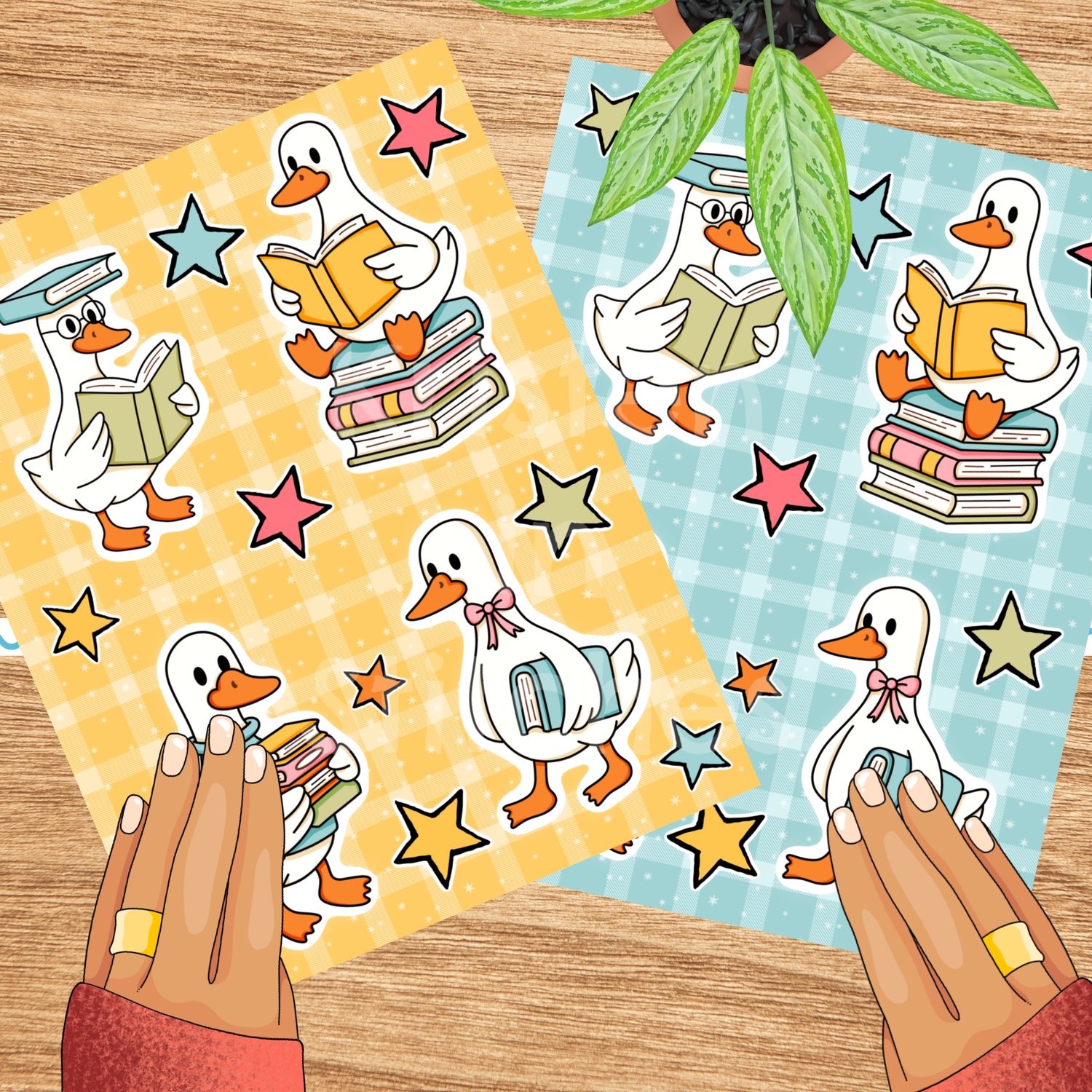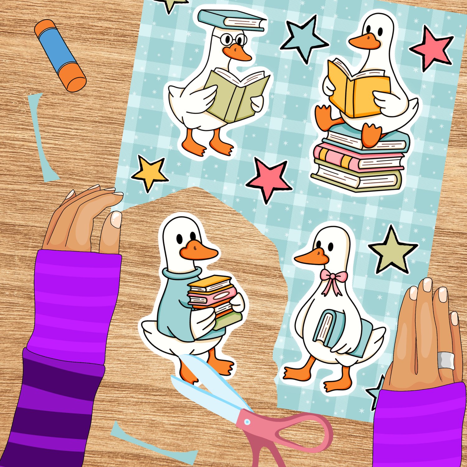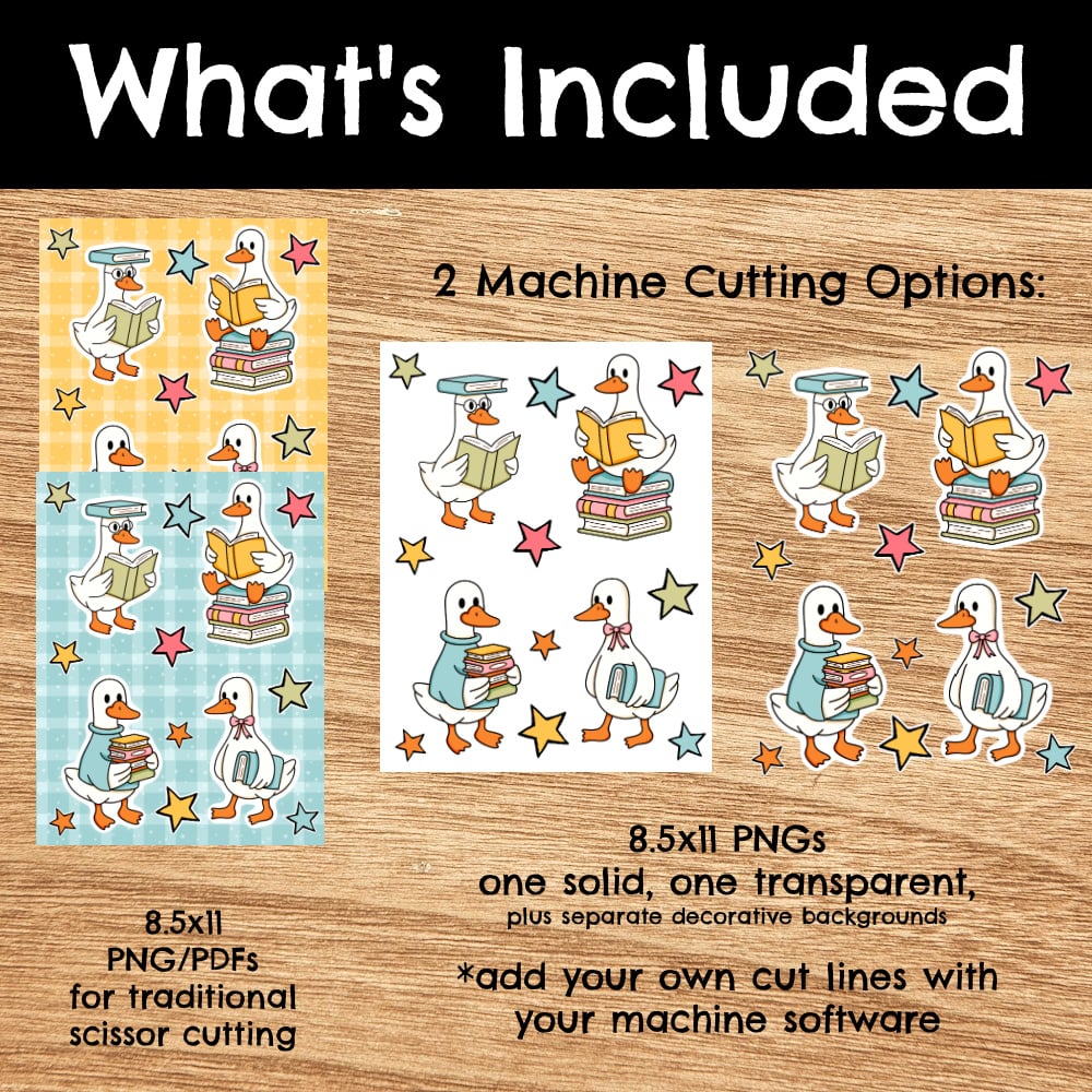Bookish School Goose Printable Sticker Sheets, PDF PNG, DIY Print & Cut Paper Crafts
