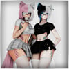 - Menu Color Swaps & Hues: Right Side Hair (6 Swaps), Left Side Hair (6 Swaps), Tail and ears swap with hair radials, Hair has a hue for colored hair options (blonde, brown, ginger and pink), Emission Radial and Emission Hue Radial for hair. Jeans, Joggers, Skirt, Panties, Socks, Shoes, Crop-Top, Long Sleeve, Jacket and Choker/Necklace all have their white toggles/extra color options. Silver accessories can switch into gold and also have their own hue shift on the purple metal swap. Accessory colors on necklaces/hair clip + clothing have their own hue shifts too!