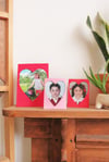 Download and print the template. Cut, fold, and glue the shapes to make nice self-standing frames. Slide your favorite photo into the frame, and ready!