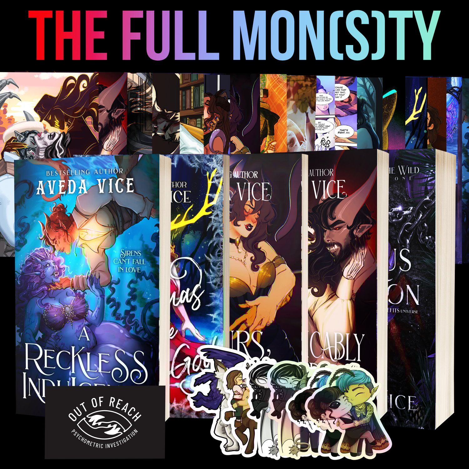 Signed paperback copy of Yours, Insatiably with all of its merch.