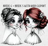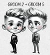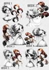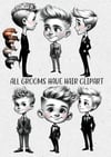 Whimsical brides & grooms. hair clipart for each doll. 76 PNGs. 6 brides, 6 grooms, 1 readymade couple. Suitable for LGBT. Wedding. Make your own couples and customise with coloured hair clipart provided.