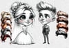 Whimsical brides & grooms. hair clipart for each doll. 76 PNGs. 6 brides, 6 grooms, 1 readymade couple. Suitable for LGBT. Wedding. Make your own couples and customise with coloured hair clipart provided