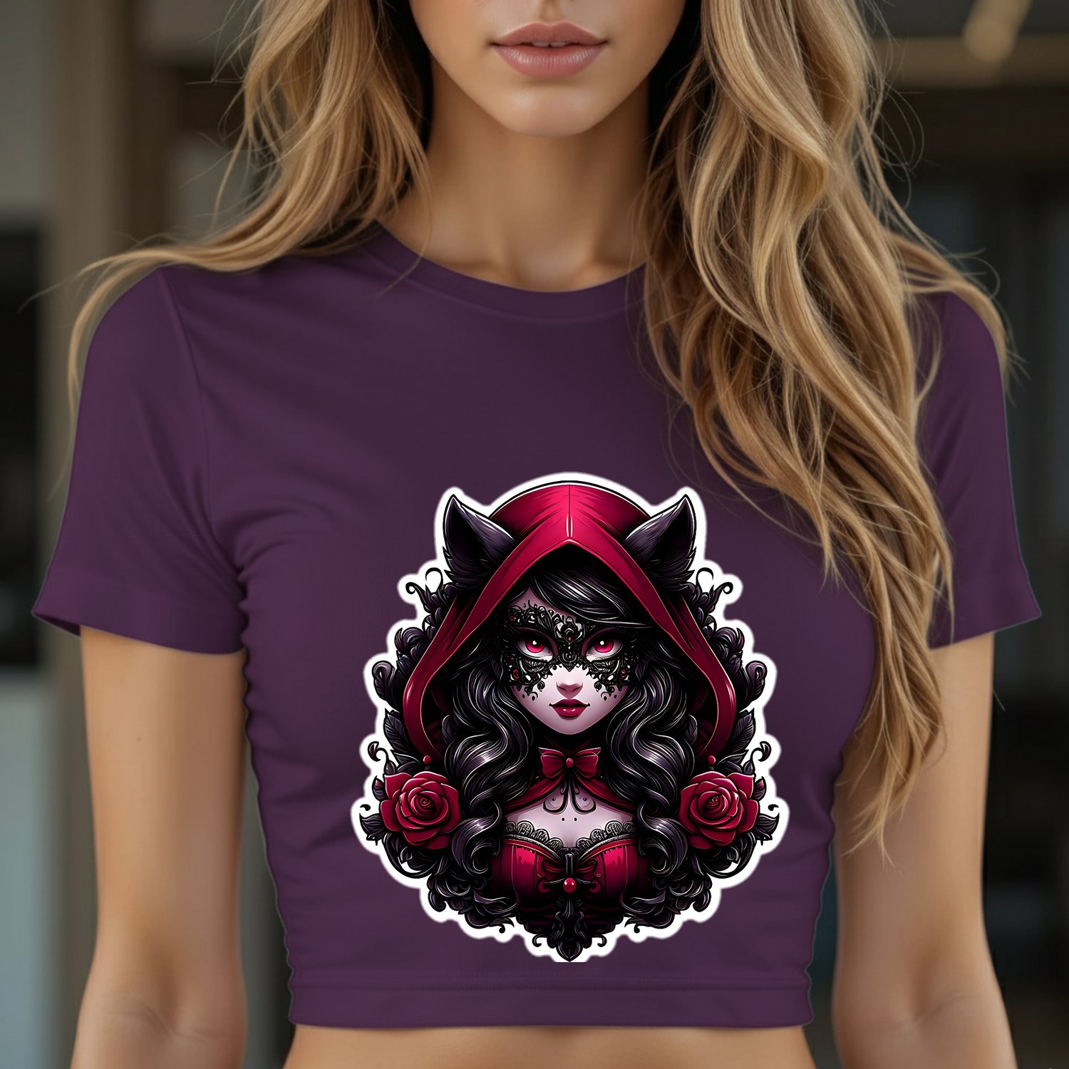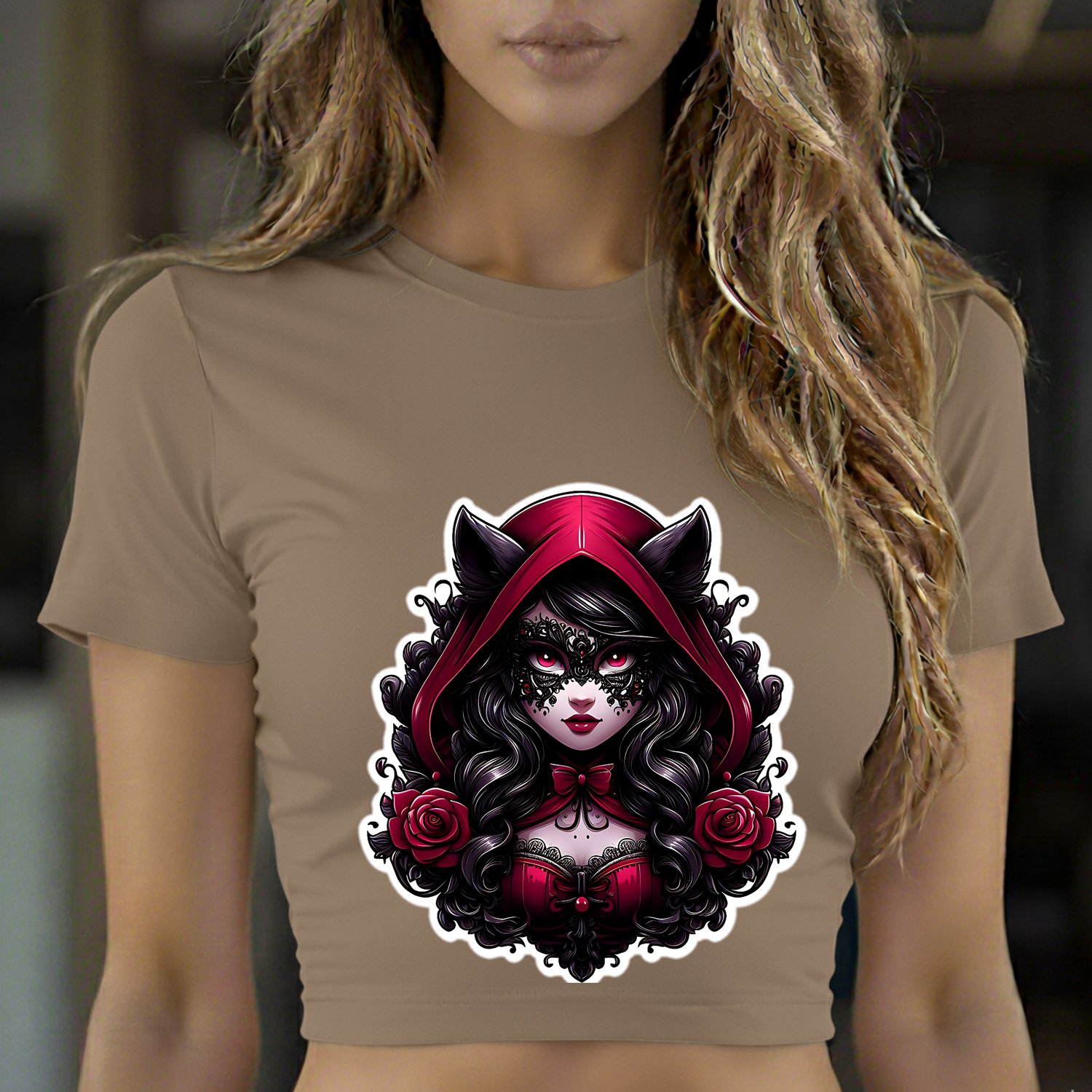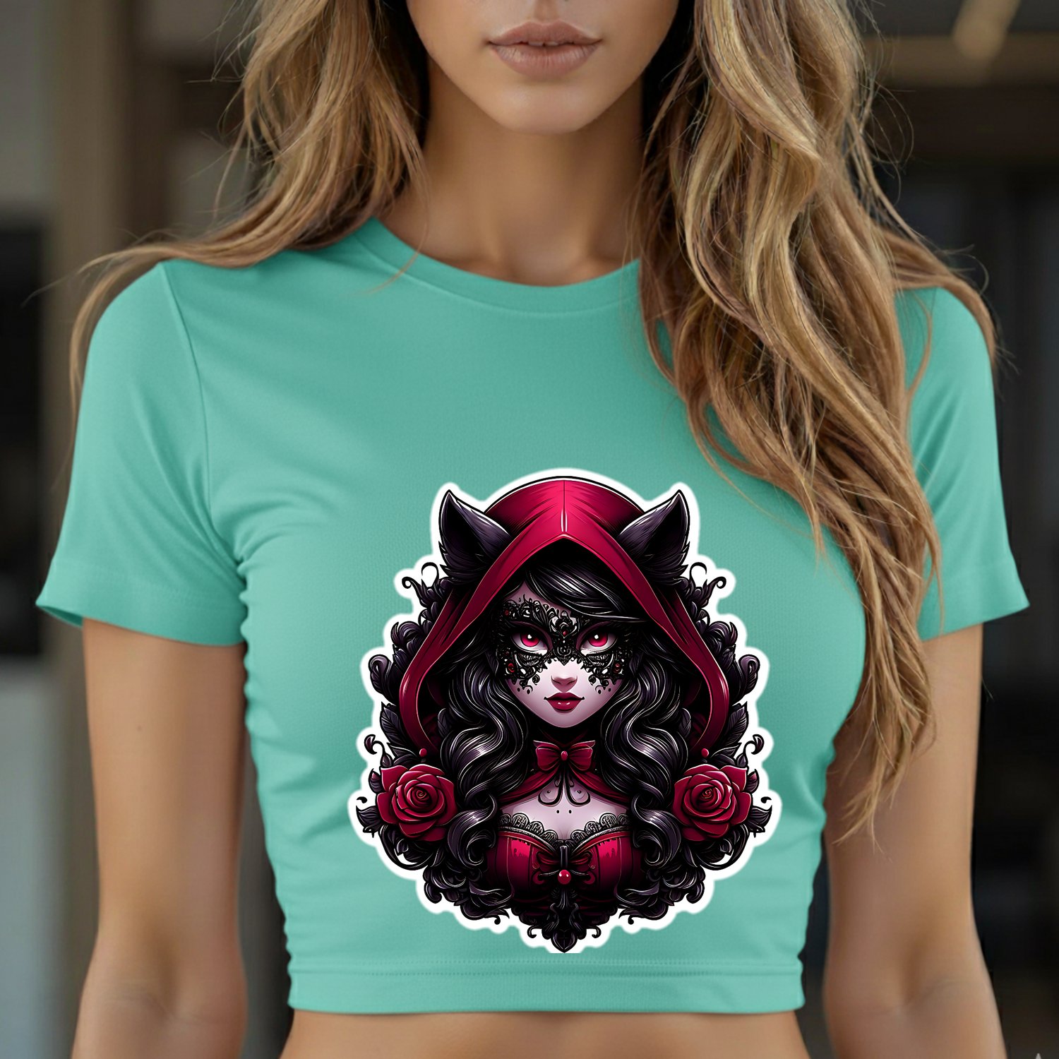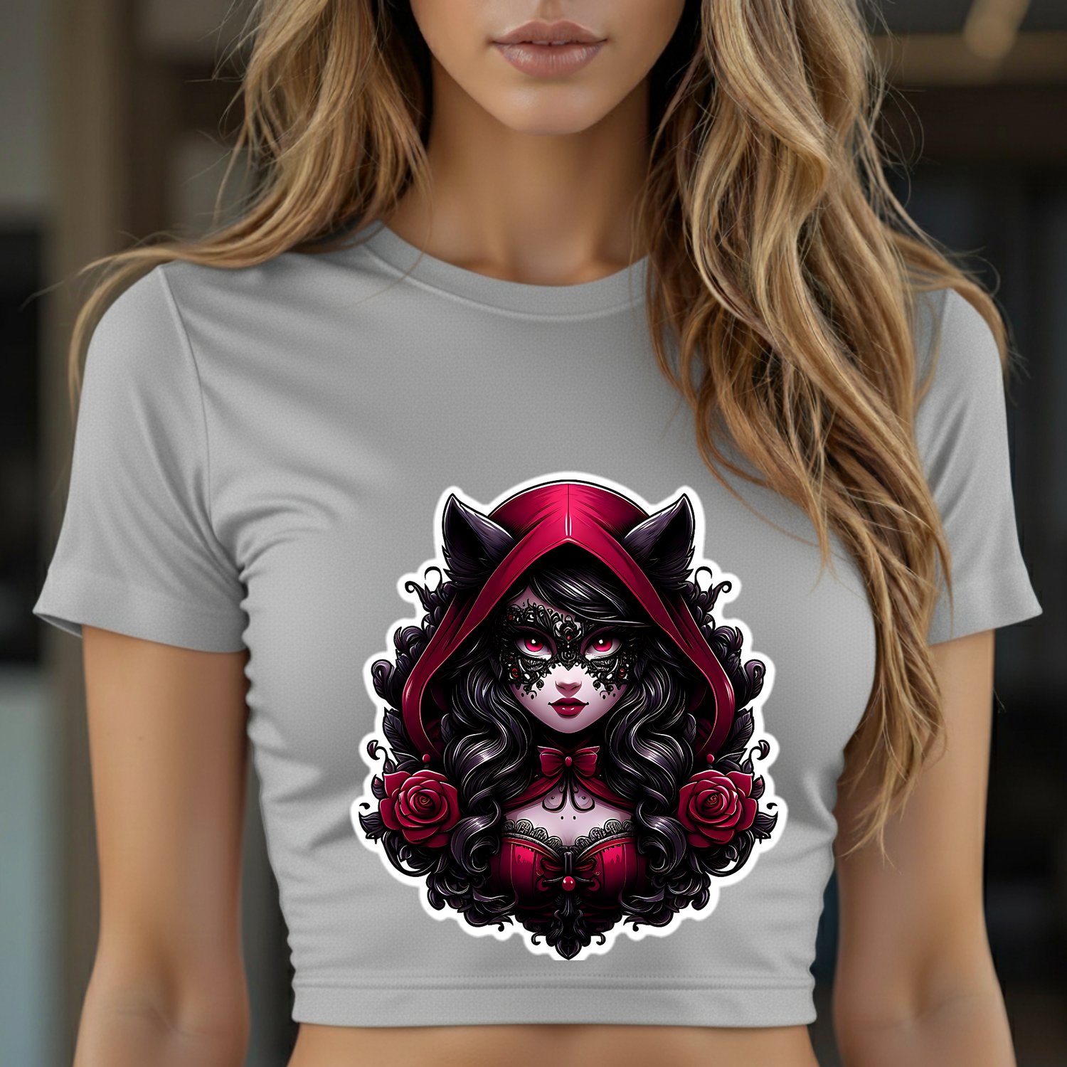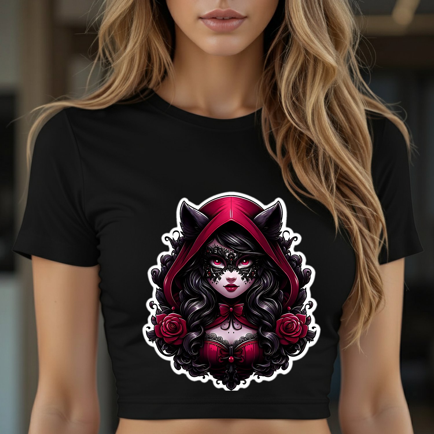 PNG and SVG digital file (6000px, 300 dpi, transparent background) of a masked lady in a gothic style with a red hood, ideal for crafts, sublimation printing, stickers, t-shirts, scrapbooking, printing, or digital design.