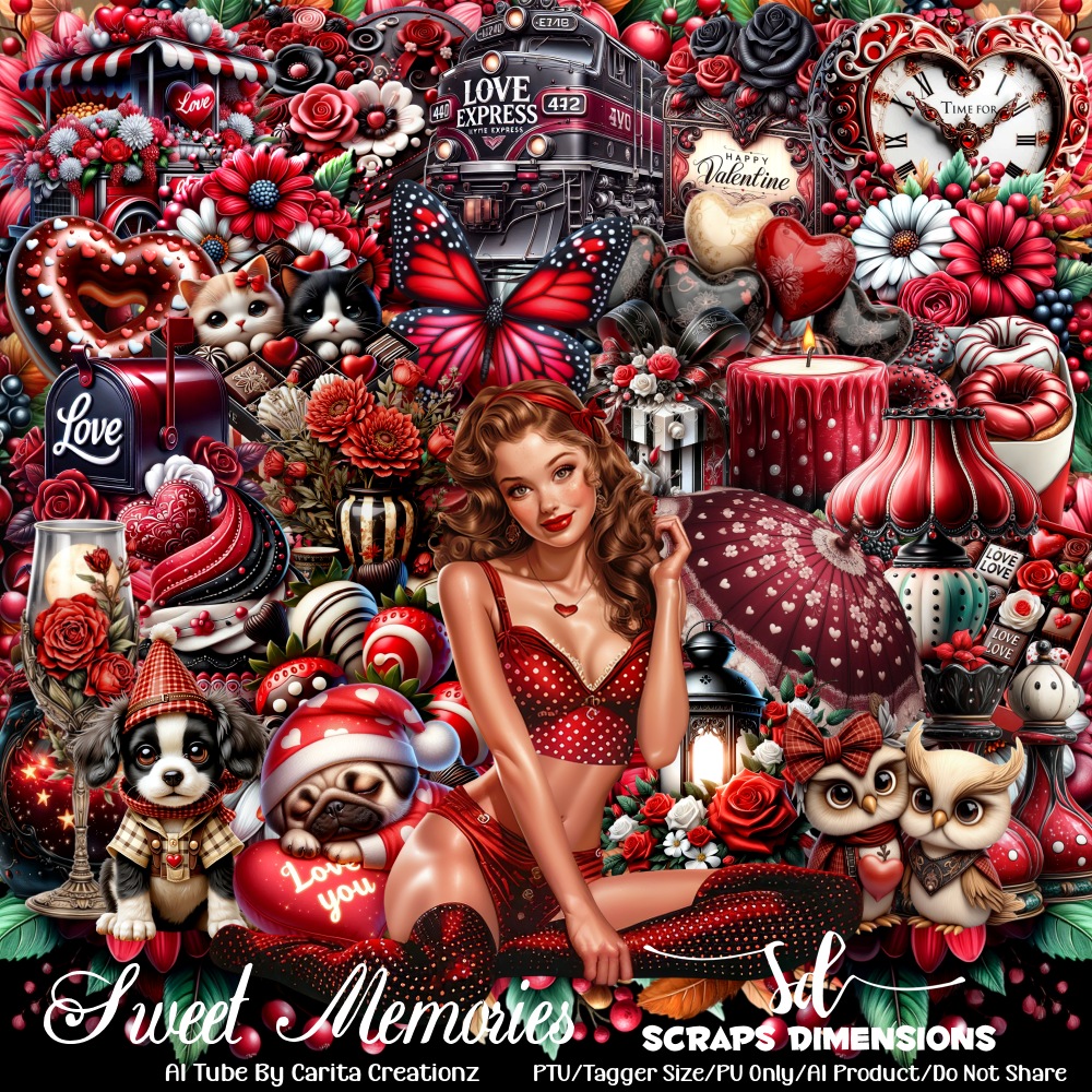 This kit contains 55 fabulous elements and 12 backgrounds. All elements are AI generated. AI tube included generated by Carita Creationz. Tagger size. Perfect for your tags and projects. Personal use only. Enjoy!