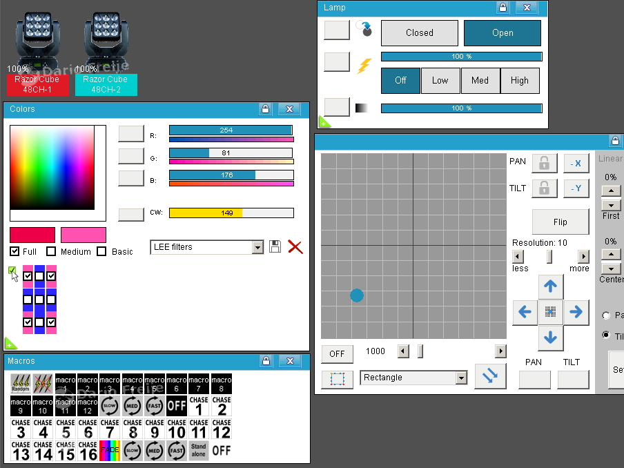 - Se entregan dos Fixtures, para el modo de 16 y 48 canales DMX.