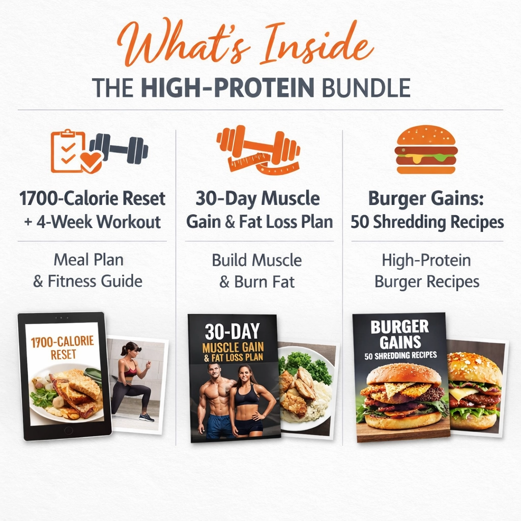 This carefully curated 3-in-1 bundle combines proven nutritional strategies with delicious, satisfying recipes that make high-protein eating sustainable and enjoyable in the long term.