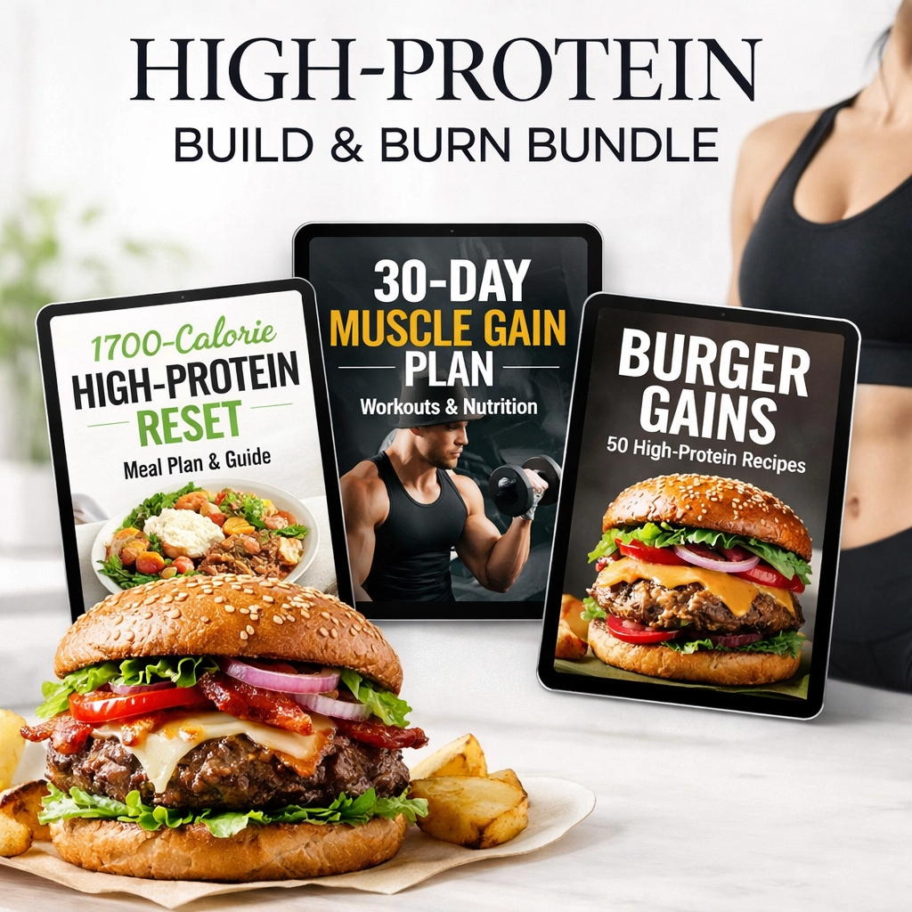 The High-Protein Build & Burn Bundle is a comprehensive, science-backed solution designed for those who want to simultaneously lose fat and build lean muscle — without resorting to bland, repetitive meals.