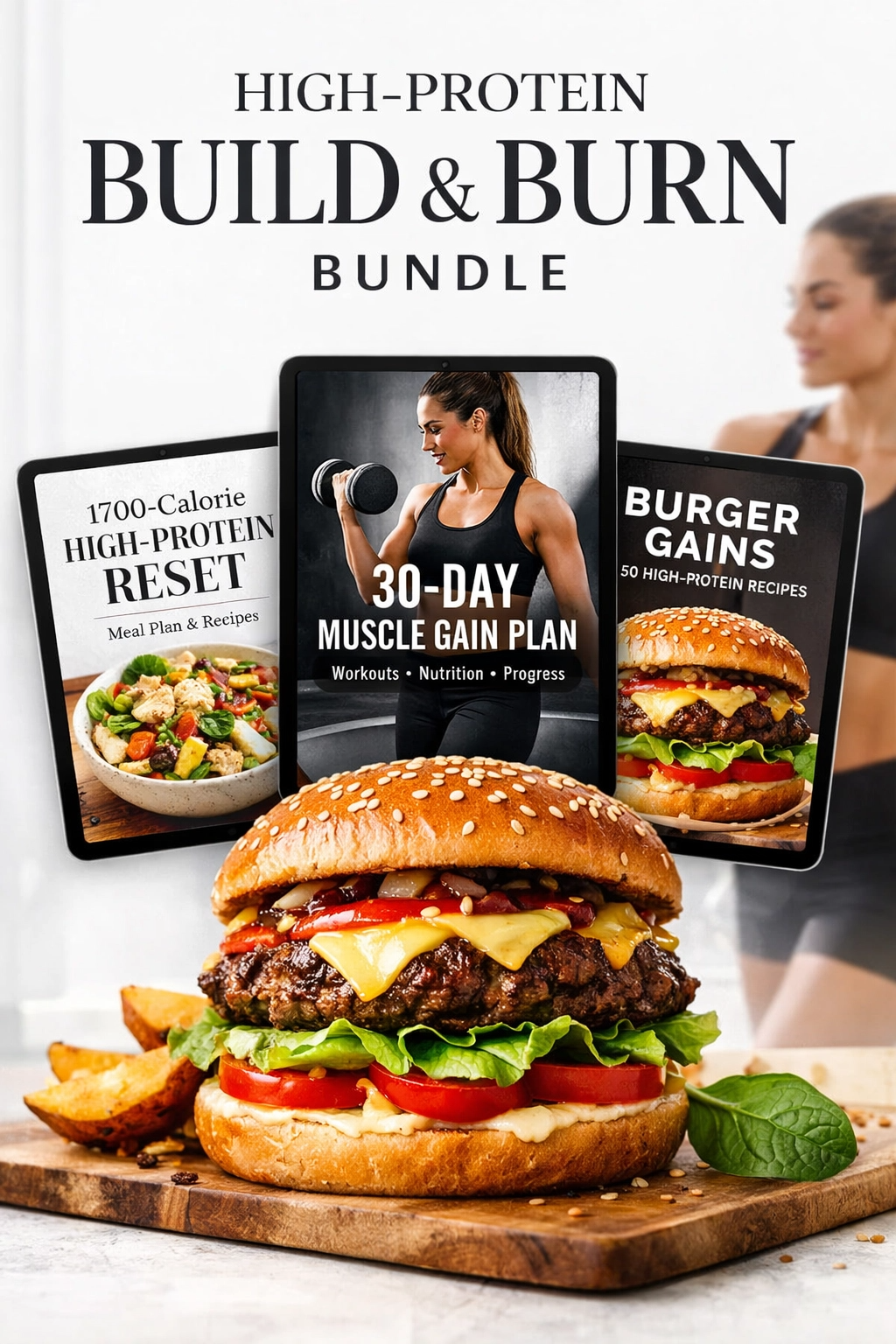 A unique recipe collection featuring 50 gourmet-style high-protein burgers. Each recipe is macro-optimized (high protein, moderate carbs, controlled fats) and designed to satisfy cravings while supporting your physique goals. From classic beef to turkey, chicken, salmon and even plant-based options — all with creative flavor combinations that eliminate the need for boring “diet food”.