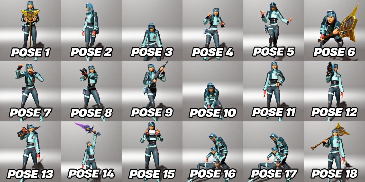 The pack includes 15 + 3 all new Fortnite poses for FortniteportingV3 Tasty Rig (IK) bones.