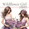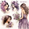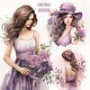 Watercolor Girl With Purple Flowers Clipart Bundle