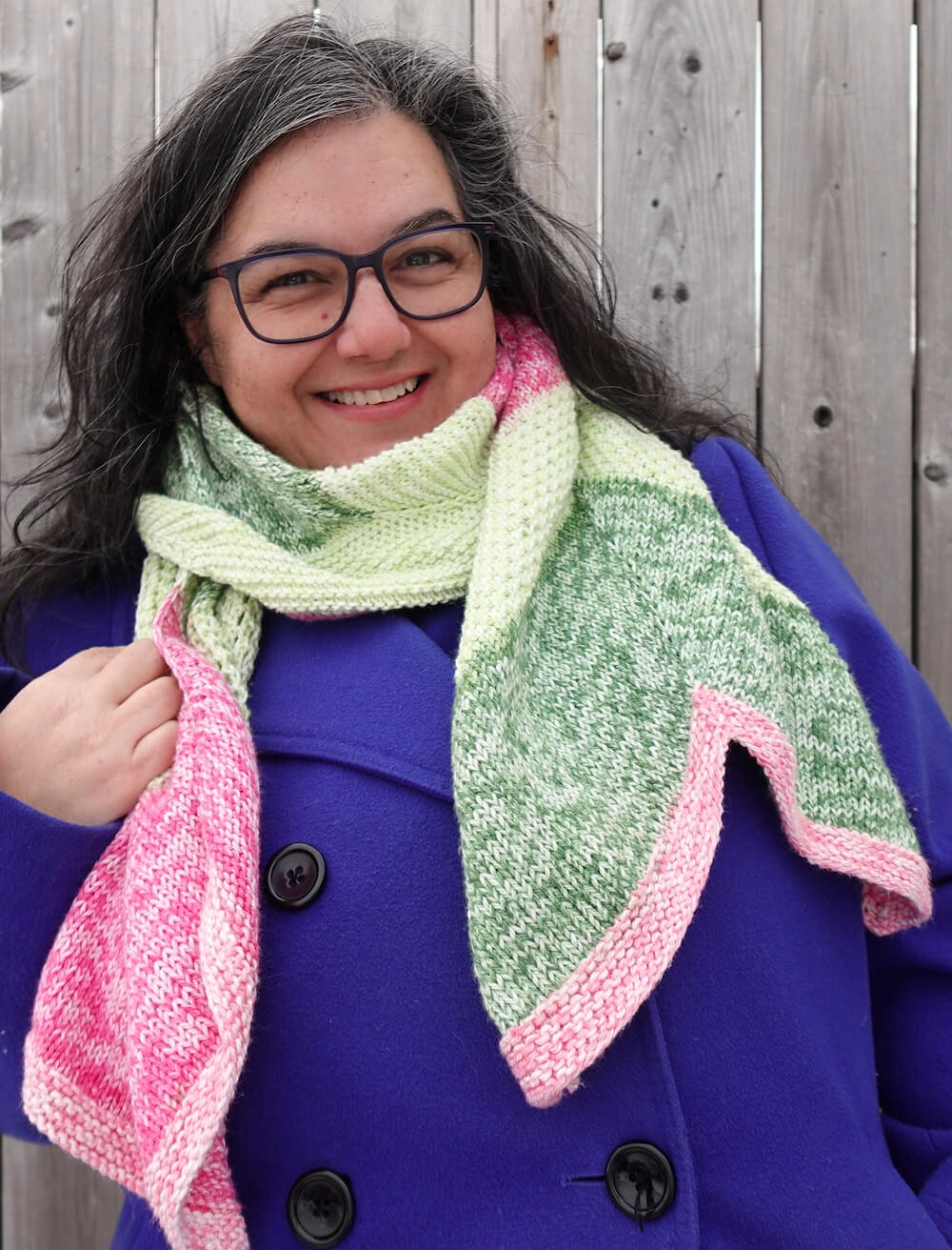 The Chevron Adventure Wrap works best with a color-changing yarn that has long color changes. Instead of working to a specific number of rows, stitch patterns change when the colors change.