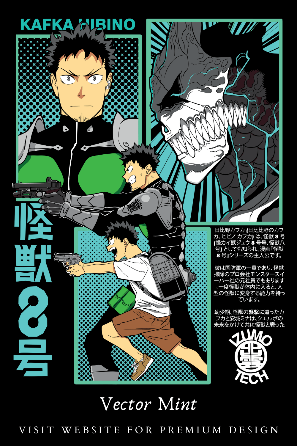 Kafka Hibino Kaiju No 8 Transformation Anime Streetwear Graphic PNG Defense Force Manga T-Shirt Design