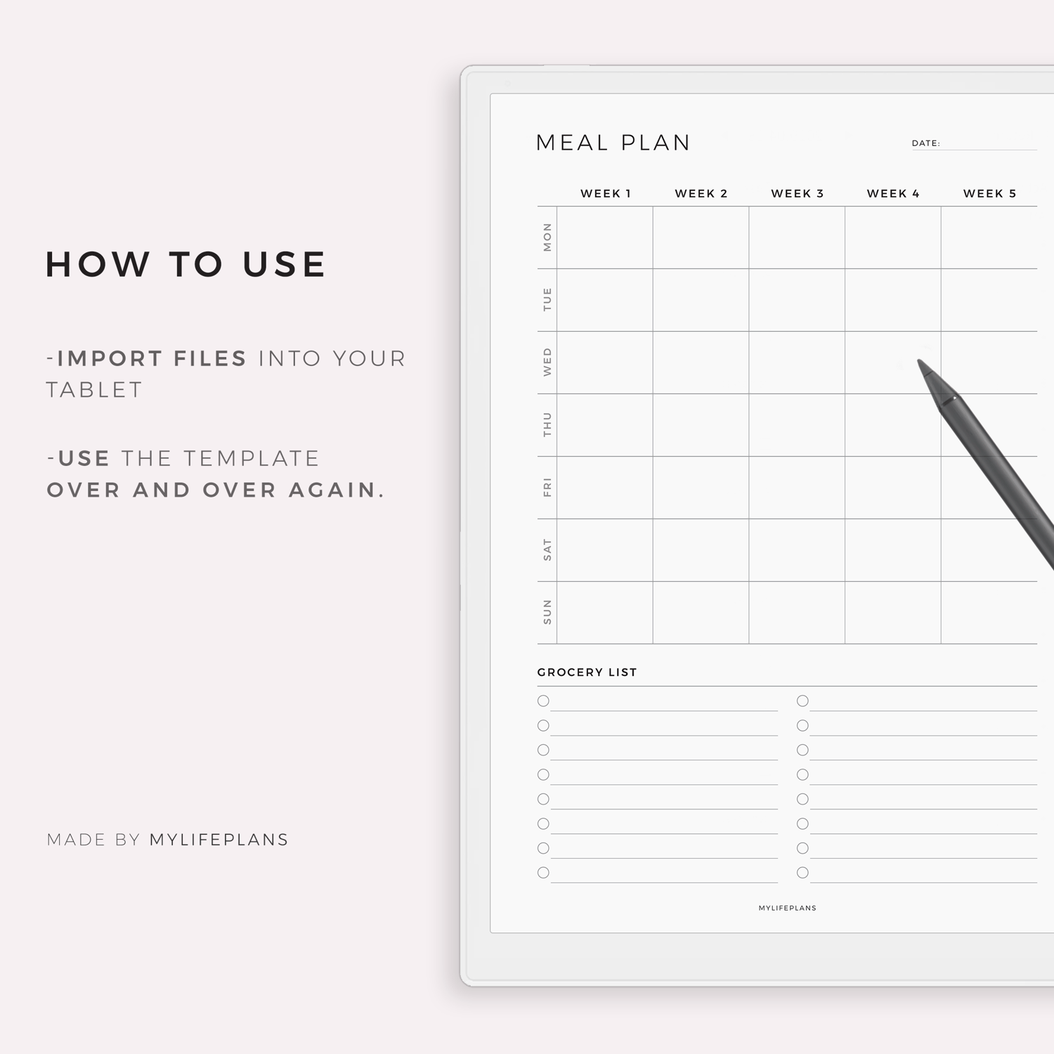 Monthly Meal Planner – A modern, minimalist template that works seamlessly with a wide range of e-ink devices. Simply download, import, and start using it right away.