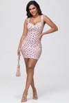 Unleash your inner vixen in the Blush Wild Side Leopard Mini Dress, where sweet meets fierce in one irresistibly sexy silhouette. This body-hugging mini features a soft blush background with a flirty pink leopard print, perfectly designed to accentuate your curves and elevate your confidence. Crafted from a luxe blend of 95% Polyester and 5% Elastane, the fabric feels smooth on your skin while sculpting your figure with a flawless fit. Whether you're headed to a night out, bae-cation, or girls’ night, this dress is your new power move.