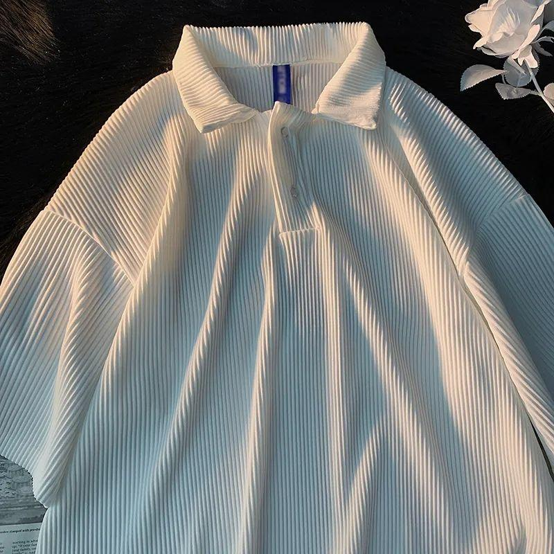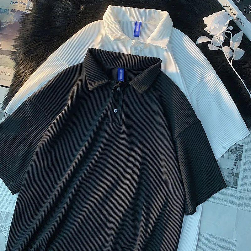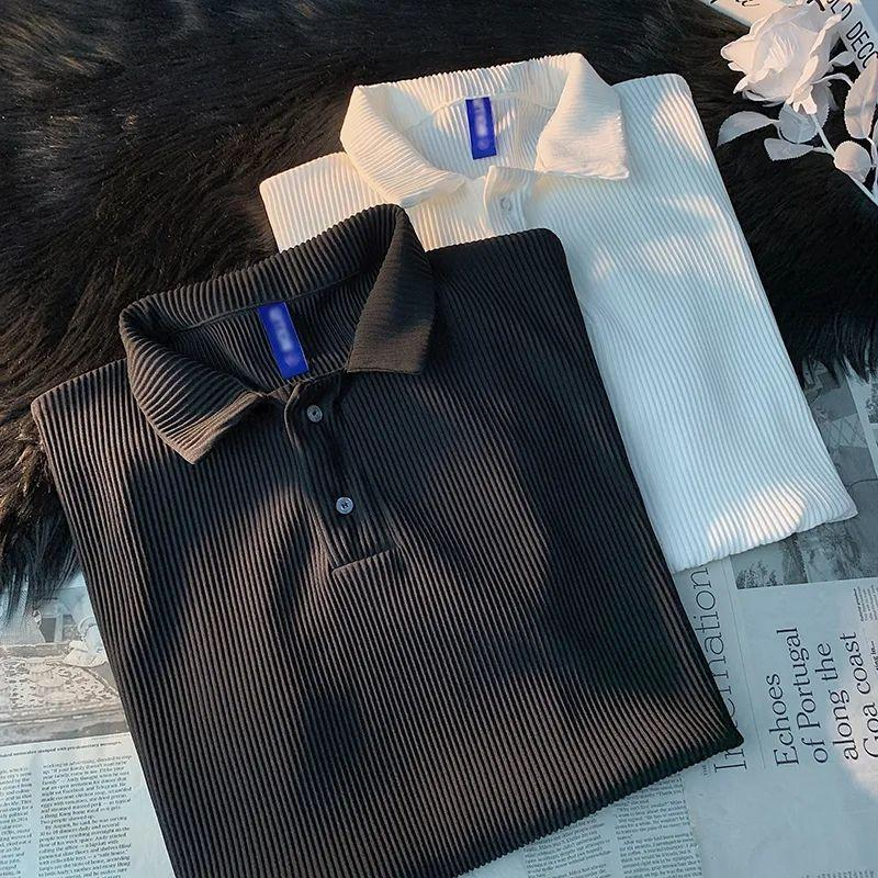 Silk-Knitted Polo Shirt with Cool Breeze, Breathable Polo Shirt with Stripes, 150.00Kg, Ideal for Couples, Japanese Style T-shirt for Men and Women